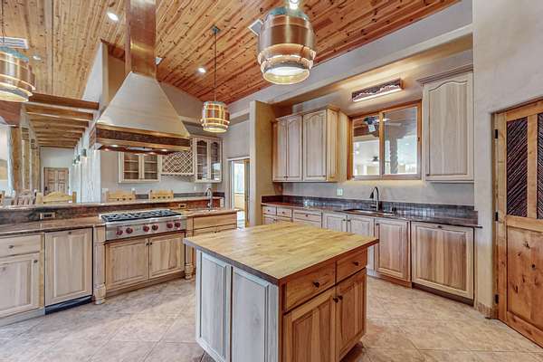 Exceptional NM Property of rich heritage features owned water rights. Located in the heart of Bernalillo this custom Rastra craftsman style home is solar powered with durable metal roof. Interior features beautiful handcrafted details which include all plaster walls, carved wood, and decorative painting. Kitchen has high end appliances, large island and tons of storage with gorgeous handcrafted cabinetry. Two master suites, large walk in closets and zoned radiant heat. Step into your private vineyard with a variety of award winning grapes, bountiful fruit orchard and 6+ acres of alfalfa. A 60 x 25 hay barn, detached 2100 square foot metal shop with automatic doors is heated and has drive through RV doors. Also features covered RV pad and hookup, hot tub, circle gated drive with law