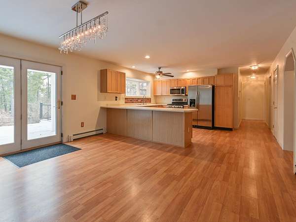 Tucked away at the end of a quiet cul-de-sac, this beautifully maintained 4-bedroom, 2.5-bath home offers comfort, space, and versatility in a private setting. The thoughtfully designed layout features a desirable first-floor primary suite complete with a private en-suite bath, providing first floor living. A south-facing sun porch stretches across the front of the home, filling the space with natural light and creating the perfect spot to relax year-round. The new composite deck just off the kitchen is ideal for outdoor dining and entertaining, seamlessly blending indoor and outdoor living. The property provides excellent opportunities with it's attached two-car garage, a full walkout basement and a separate Barn/Garage with two 12-foot-high doors and a second floor--perfect for storage, workshop and ideal for boat or RV storage. Surrounded by woods and beautifully landscaped grounds. Great opportunity to own a versatile and inviting home in a sought-after island location.