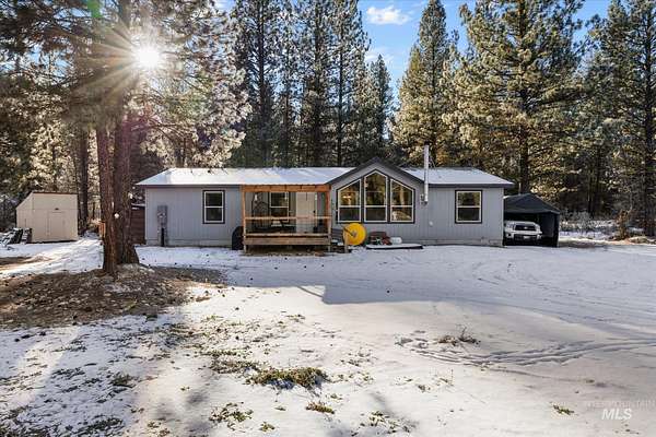 Mountain living at its best on 2.3 private, wooded acres in Idaho City. This like-new 2023 custom-built 3 bed, 2 bath home offers 1,777 sq ft with an open-concept great room, split-bedroom design, and cozy wood stove for true mountain comfort. Spacious kitchen features island, breakfast bar, and dining area with views of surrounding pines from every window. Outside you'll find a 32x24 shop with concrete floor and power, plus two additional sheds for storage. Chickens allowed. Steps to Mores Creek and minutes to endless recreation including fishing, hiking, trails, and nearby hot springs. Gravel driveway, private well and septic, well-maintained roads, and easy year-round access. Just 30 minutes to East Boise and Micron via Hwy 21. Peace, privacy, and adventure all in one incredible Idaho mountain retreat.