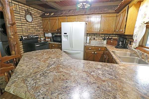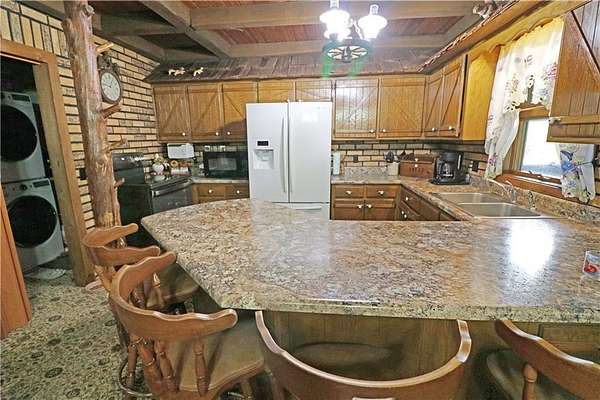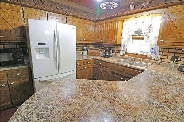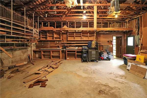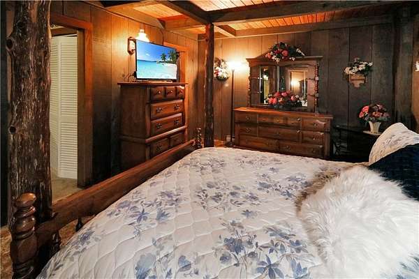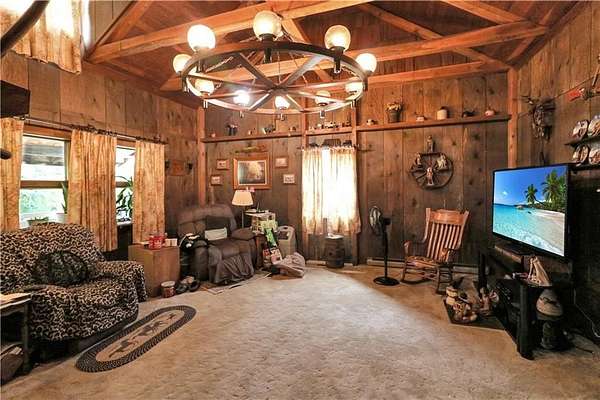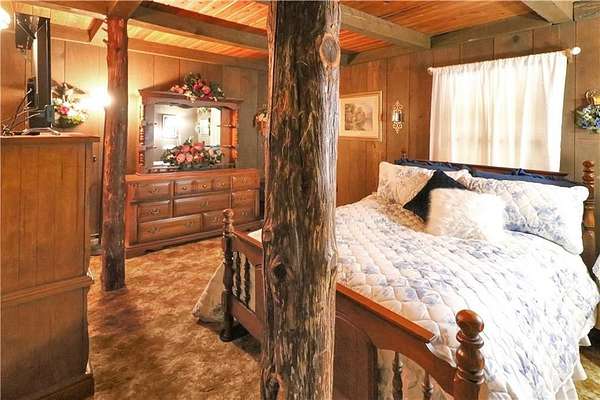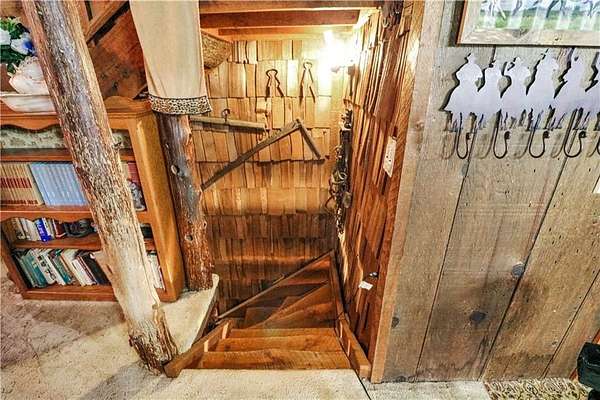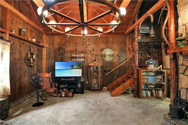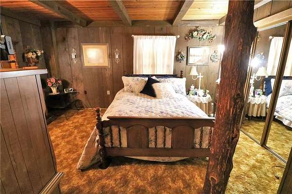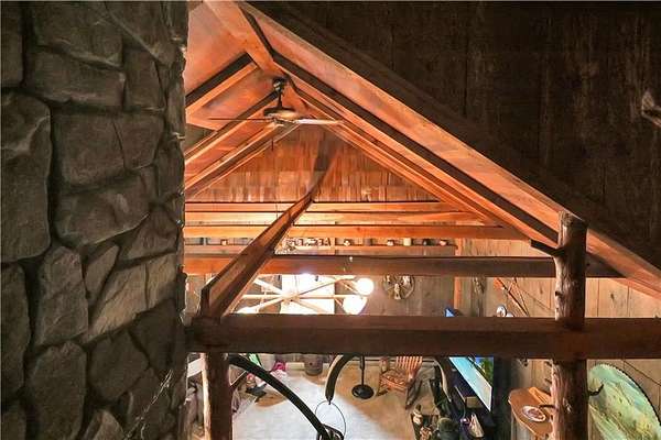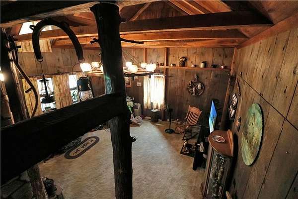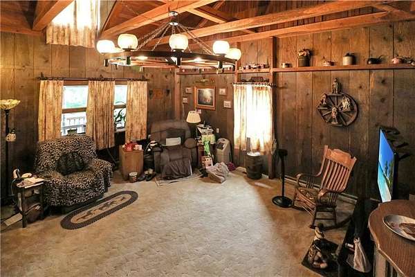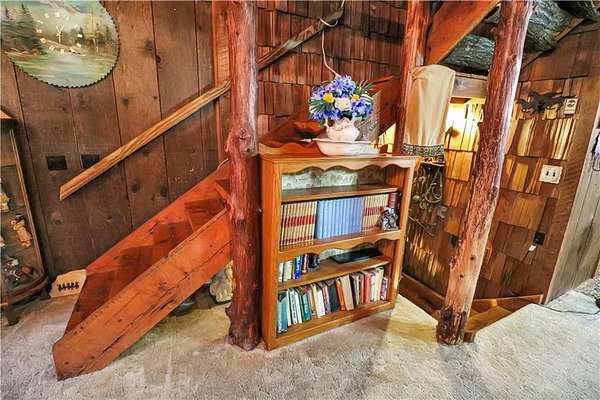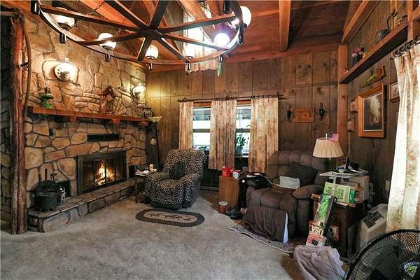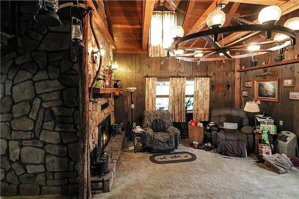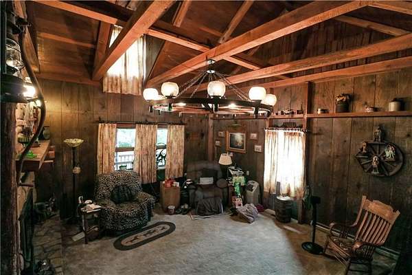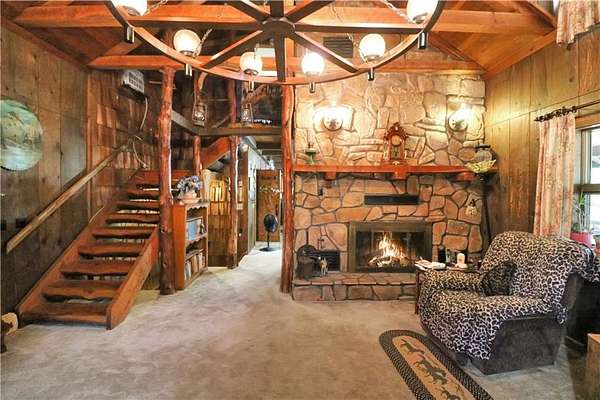 Take notice - 6 Acres NORTH of Warrensburg with a private stocked lake! Discover a rare opportunity to own this unique 3-bedroom, 2-bath Western-style log home. At the heart of the property lies a stunning 2-acre manmade lake, fully stocked and perfect for peaceful mornings or weekend fishing. Step inside and be greeted by a unique wood interior featuring a striking spiral staircase and handcrafted custom kitchen cabinets. The home exudes warmth and character throughout, blending rustic charm with thoughtful details. Outdoors, you'll find a variety of fruit and flowering trees, space to roam, and endless potential for gardening, relaxing, or entertaining. Large doesn't even begin to cover the actual size of the shop/garage spaces with 3 oversized doors in one area, a wood working shop in another, and then a 4th garage PLUS a huge all concrete room. There is ample room for projects, storage, or hobbies. Additional features include a brand-new roof and gutters, as well as two septic systems for added convenience and capacity. Whether you're seeking a private retreat or a place to create your dream homestead, this one-of-a-kind property offers it all.