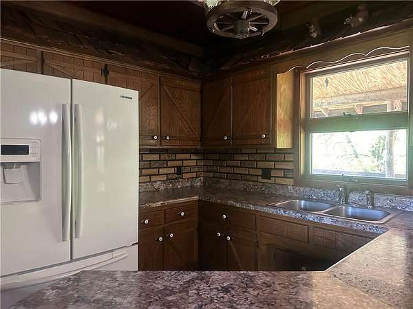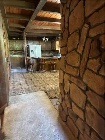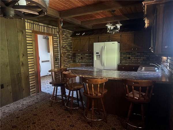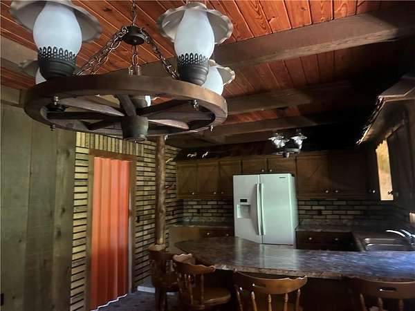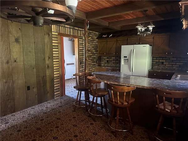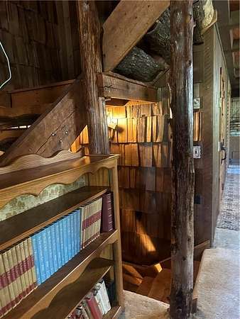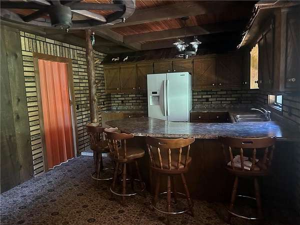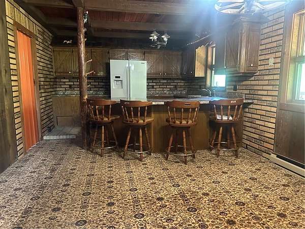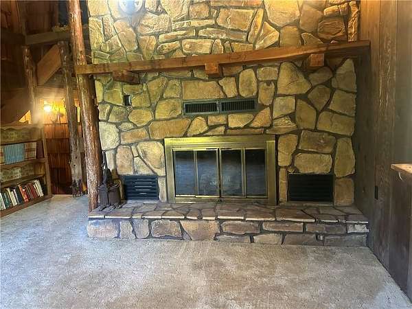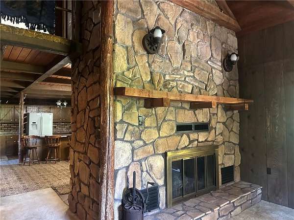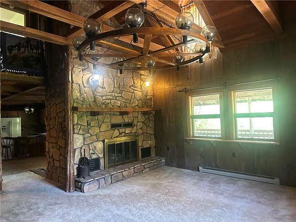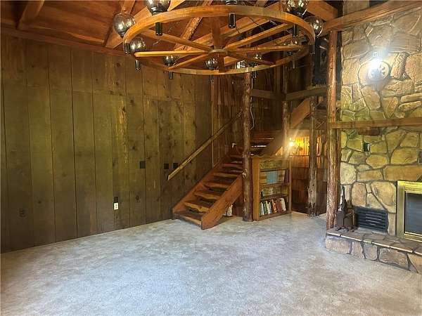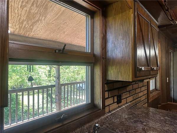 This is it! A log cabin style multilevel overlooking the owner's lake in front. A unique interior with hand hewn post and stairs and interesting rugged walls of shakes and wood mostly. Cultured stone on floor entries and 2 beautiful culture stone fireplaces. Enjoy the evenings on the deck cooking out and enjoying the moment. If you need multiple garages there are 4 with concrete floors and electricity attached to the home. Have you always wanted a large workshop...wish granted here with huge workshop wired for an air compressor, surround shelving, concrete floor and attached to the house. There is a storm shelter and or storage. There needs some updating and etc. The owners did sell a small triangle shape that squares off property to a neighbor so a new legal description and plat will be in order. Seller marked on the plat in supplements approx.