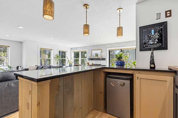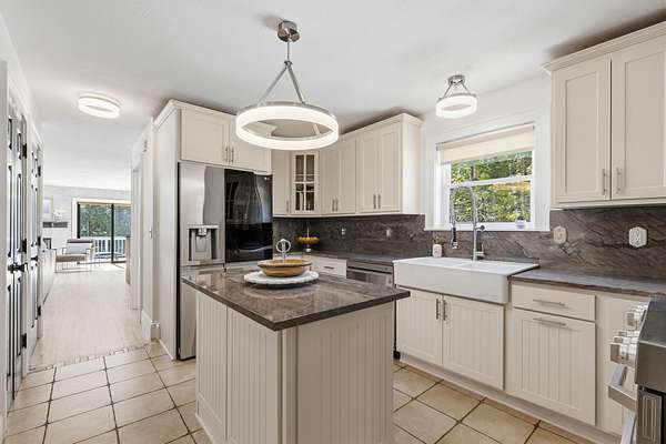 Welcome to 17 Northern Oaks Drive in Gray, ideally located between Little Sebago Lake and Big Sebago Lake, offering the Sebago Lake lifestyle without the lakefront price. Set on a private 1.88-acre lot, this beautifully updated home blends modern upgrades with a peaceful setting just minutes from North Windham amenities. Pre-inspected for buyer confidence, this move-in ready home features a bright, open-concept layout filled with natural light. The fully renovated kitchen (2023) includes shaker-style cabinetry, quartz countertops, tiled backsplash, and premium smart appliances. The main living area offers refinished hardwood floors, fresh paint throughout, and a welcoming living room with fireplace and built-in bar, with direct access to a side deck ideal for relaxing or enjoying the sun. In 2024, the former garage was converted into a finished great room/den with Calcutta tile, storage, and a Rinnai heater, providing flexible living space. The daylight walkout basement offers excellent potential for future expansion. Outdoor improvements include approximately .50 acres of cleared, level, and highly usable green yard with new sod, rock features, and landscaping. The back deck with LED lighting provides a peaceful setting to enjoy your surroundings. A second paved driveway adds convenience and future garage potential. A whole-house generator provides added peace of mind during Maine winters. Located just minutes from North Windham shopping, dining, and recreation, this well-maintained home offers privacy, thoughtful upgrades, and a true Maine lifestyle in a highly desirable location.