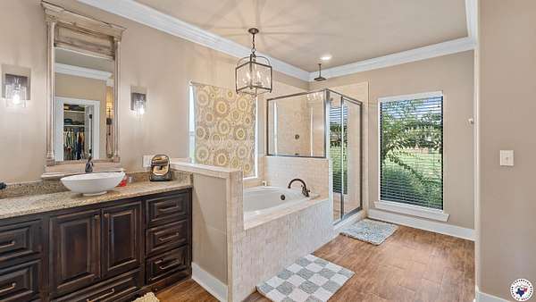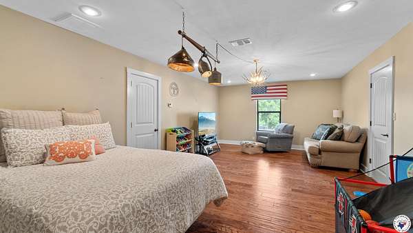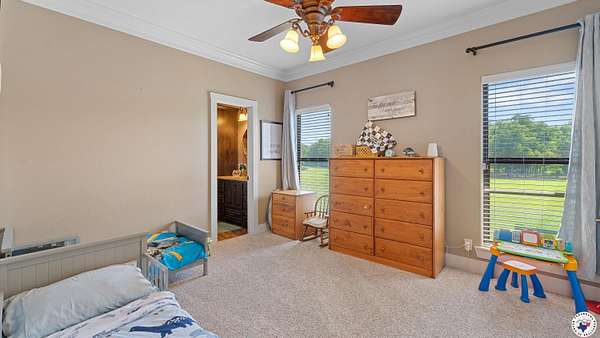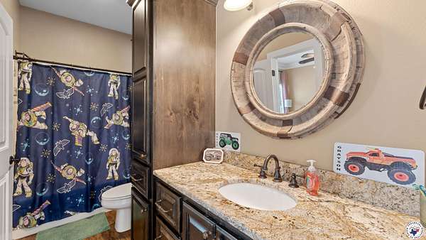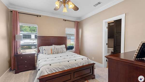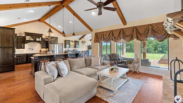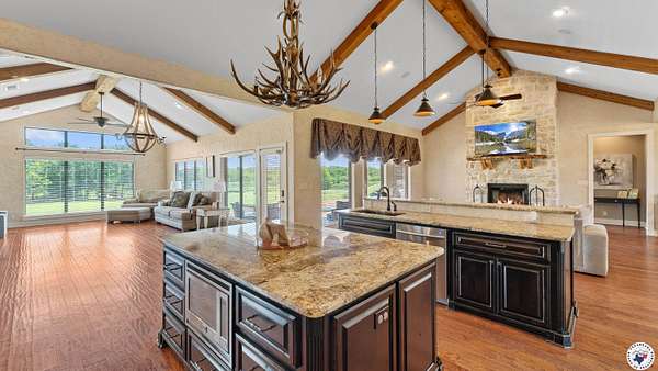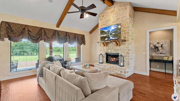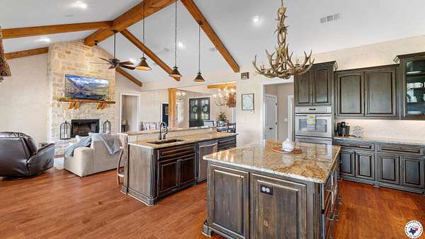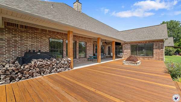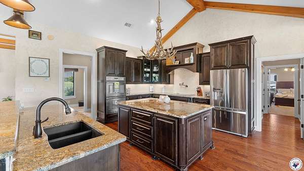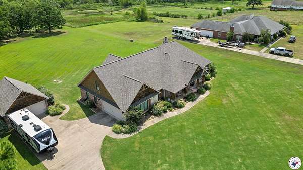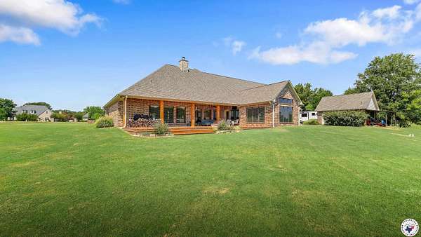 Welcome to 17 Oakridge! Here you can enjoy the convenience of being close to everything you need while not living in the middle of town. This custom home offers over 3400 square feet of living space with a split bedroom layout downstairs and a large guest room and extra full bathroom upstairs! Upon entering the home you will find the office to your immediate right and the primary bedroom suite just passed it off the main living room. The main bedroom is wide open enough for a sitting area and has doors to head straight onto your back porch. The attached bathroom features a soaking tub and separate walk in shower, along with 2 great closet spaces! From the living room you'll access the formal dining space and the kitchen with beautifully stained custom cabinets and granite counter tops. Off the kitchen is the second living space and you will see that both living areas, the kitchen and dining room are all an open concept. The half bath and Jack and Jill style bedrooms and shared full bathroom are off the kitchen and second living space. Another hallway off the main area leads to the laundry room, pantry, a drop zone, the stairs leading to the extra bedroom and full bath and at the end of this hallway is your garage access. Other great features about this home are the detached double garage with a full bathroom and fully floored attic space for storage above it. Also, the front and back yard sprinkler system, the floor to ceiling stone fireplace and the beautiful view of the lake in front of the home! Come see all this home has to offer!
