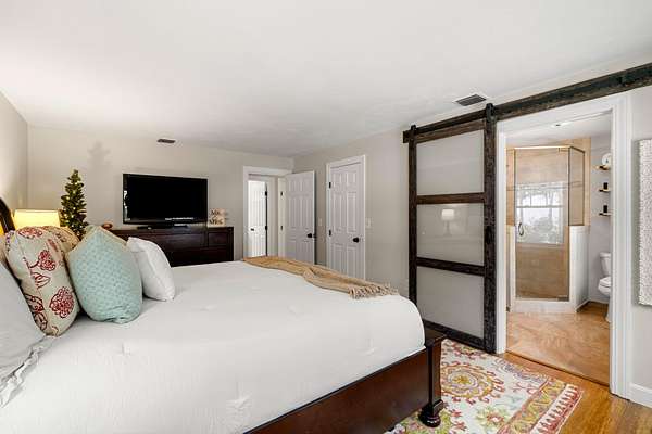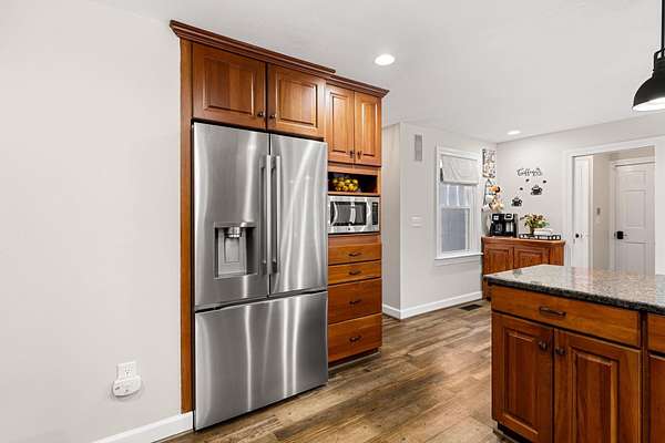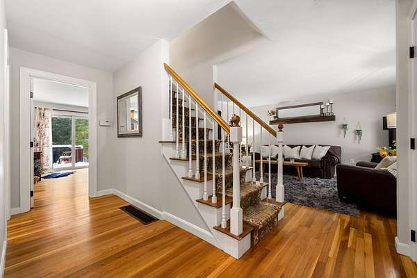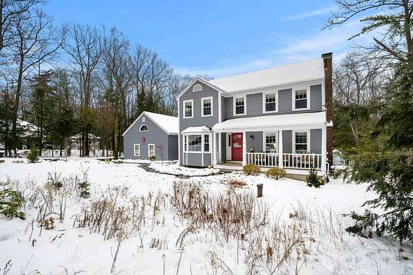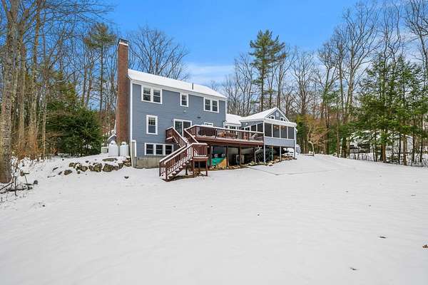 Welcome to this exceptional Bedford residence, perfectly situated in the highly coveted Riddlebrook School District. With over 3,000 square feet of well-appointed living space, this four-bedroom, 2.5-bath home blends classic New England charm with thoughtful, flexible design. The main level offers a warm and inviting layout featuring a dining room, living room with a gas stove insert, and a spacious family room anchored by a wood burning fireplace. The eat-in kitchen provides ample cabinetry and room for daily gathering, while a convenient first-floor laundry adds everyday practicality. A screened porch, deck, and charming front porch create seamless indoor-outdoor living and are ideal for enjoying warm summer days. Upstairs, you'll find four comfortable bedrooms, including the primary suite, plus a generous bonus room above the garage--perfect as a fifth bedroom, playroom, home office, or creative studio. The finished basement extends the home's versatility with a large recreation area, an additional family room, and a workshop for hobbies or storage. Fitness enthusiasts will appreciate the dedicated gym with its own exterior entrance, offering privacy and flexibility for personal or client use. Set on a wooded lot with a flat, grassed backyard, the property offers a perfect blend of natural beauty and functional outdoor space. This Bedford home delivers space, versatility, and an unbeatable location. Showings begin tomorrow at the Open House