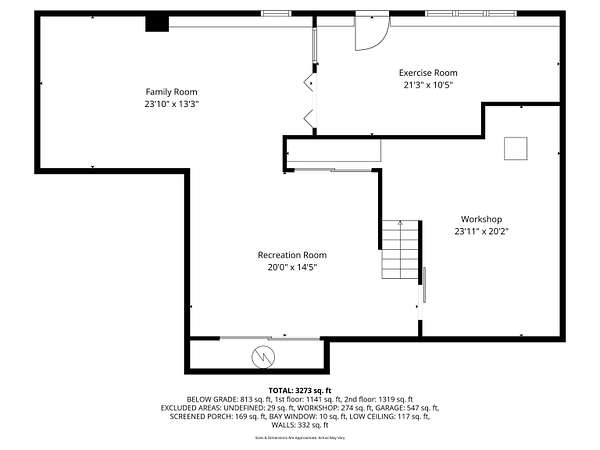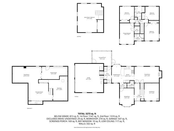Basement, Bathroom x 3, Bedroom x 4, Bonus Room, Dining Room, Exercise Room, Family Room, Kitchen, Laundry, Living Room, Workshop