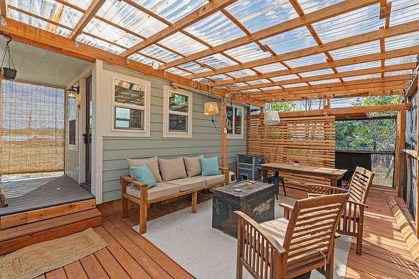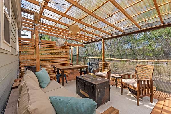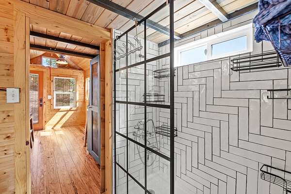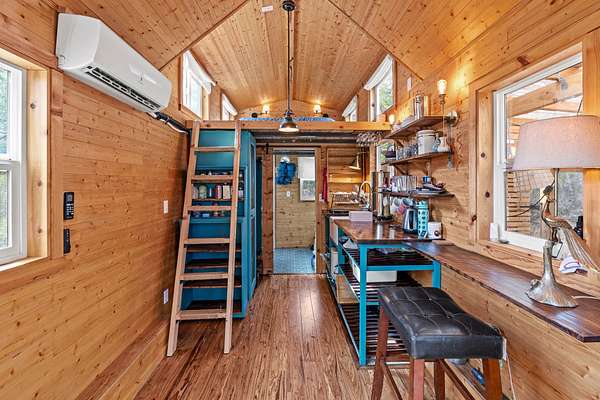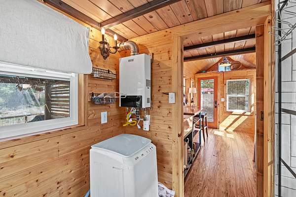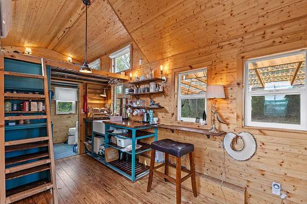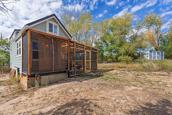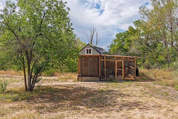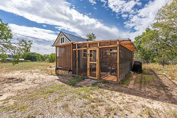 Escape to this beautifully crafted 28' x 8' tiny home, offering the perfect balance of comfort, efficiency, and seclusion. Nestled just a short drive from Santa Fe, Los Alamos, and Espanola, this thoughtfully designed retreat is functional for full-time living, a weekend getaway, or an off-grid workspace. Step inside to discover a bright and functional layout featuring a well-appointed kitchenette, a 3/4 bath connected to its own septic system, and a 72 sq ft sleeping loft perfect for restful nights. The home is fully powered by solar energy and equipped with a mini-split system for year-round heating and cooling, along with a high-efficiency water heater to keep utilities low and comfort high. Whether you're seeking solitude, sustainability, or a simplified lifestyle, this tiny home offers it all in a peaceful and private setting - with the convenience of nearby cities just minutes away.