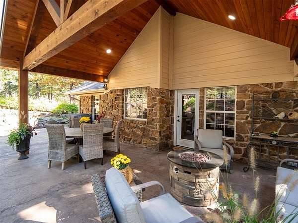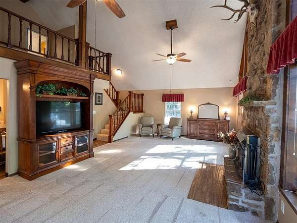 A Storybook Cottage Retreat in the Woods! Tucked away on 2.64 acres of beautifully wooded and landscaped property, this one of a kind stone two story home feels like something out of a fairytale. Located in North Rock Creek School District, it is full of cottage charm and has a lovely private setting. This property offers the perfect retreat from the everyday. Inside, the open floor plan features a spacious dining area and a warm, inviting kitchen that's perfect for entertaining or quiet evenings at home. The stunning living room boasts a soaring cathedral ceiling and a striking stone fireplace that anchors the space with rustic elegance. The primary suite includes a cozy sitting area, and there are two additional bedrooms for family or guests. Outside, you'll find everything you need to unwind or host gatherings including an amazing patio, an above ground pool, and a charming detached "she shed" for hobbies or relaxation. The property also includes a detached / workshop. Every inch of this home offers peace, privacy, and personality, truly your own private woodland getaway.