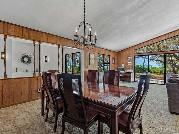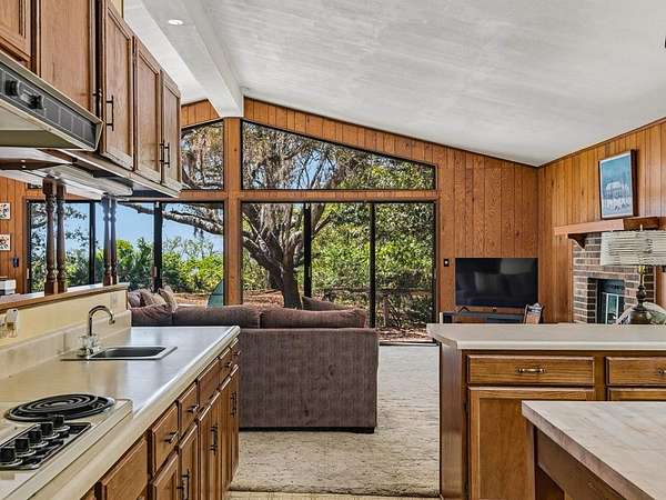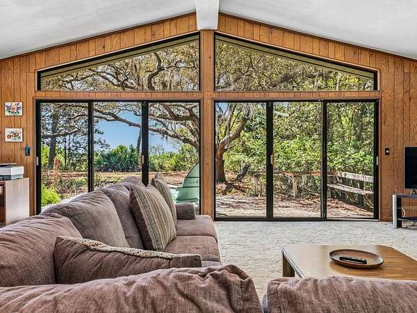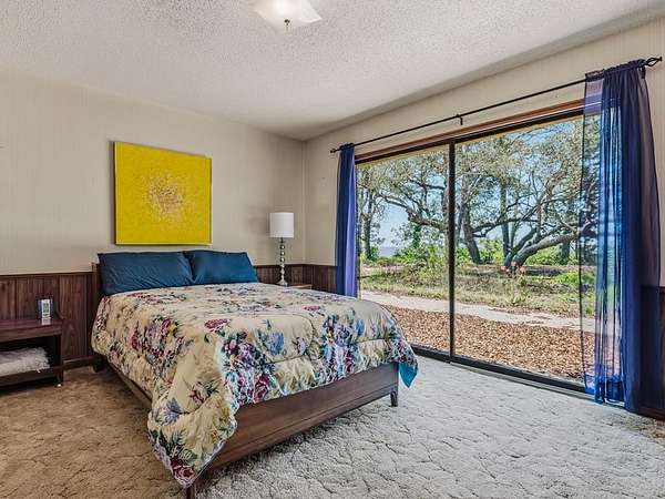 Bayside retreat on 1.95 acres with sweeping views of Apalachicola Bay and your own private beach. This 2-bedroom, 2-bath home offers an open floor plan with vaulted ceilings in the living room and a wood burning fireplace for those cozy fall evenings. The large kitchen features abundant cabinetry & counter space, butcher block center island, wet bar and new double ovens. Two skylights provide nature lighting that keep the kitchen well lit. The primary suite includes a large walk-in closet & a full bath with sky light. Recent upgrades to this home include a new Trane high-efficiency HVAC & heat pump, metal roof, and a whole-house Generac generator to provide peace of mind. Enjoy the oversized two-car garage with ample work space, shelving, utility sink & new automatic garage doors. Just minutes to St. George Island, Eastpoint and Apalachicola amenities-this home combines comfort, privacy, and convenience.