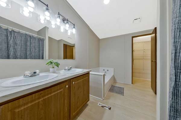 - 1 st Bedroom En Suite, Ceiling Fan(s), Closet(s) Walk-In, Deck Open, Dishwasher, Dryer Hook Up Electric, Eat-In Kitchen, Kitchen Exhaust Hood, Kitchen Island, Main Floor Laundry, Main Level Bedroom Suite, Open Floor Plan, Pantry-Walk in, Range/Oven Hook Up Elec, Refrigerator, Split BR Floor Plan, Tub and Separate Shower, Tub/Shower Combination, Twin Sink Vanity, Washer Hook-Up, Water Heater Electric