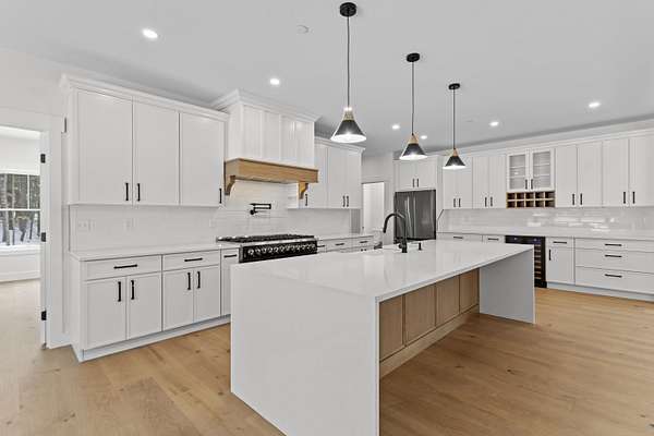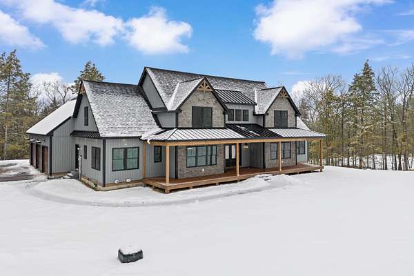 Beautifully appointed 5-bedroom, 3-bath farmhouse offering 3,600 square feet of thoughtfully designed living space, set on 2.28 private acres in sought-after New Boston, NH. Tucked away on a quiet cul-de-sac, this property is the perfect blend of privacy & charm. A stunning farmer's porch welcomes you into a bright, open-concept interior designed for both everyday living and elegant entertaining. The chef's kitchen is the heart of the home, showcasing quartz countertops, a large center island, and custom cabinetry, seamlessly flowing into a spacious dining area. Gleaming hardwood floors run throughout, complemented by expansive windows that capture peaceful views while you sit by the fireplace during those cozy evenings in. This home offers the special touch you've been searching for with its quality finishes & thoughtful built-ins. The first-floor primary suite provides a true retreat including a spa-inspired bath and a generous walk-in closet with private laundry. Upstairs, you'll find four additional bedrooms, along with a second full bath, and additional laundry space--ideal for family living or hosting guests. Blending timeless farmhouse charm with modern amenities, this exceptional home delivers comfort, style, and privacy in one of the area's most desirable locations. Agent interest in property- primary photo enhanced.