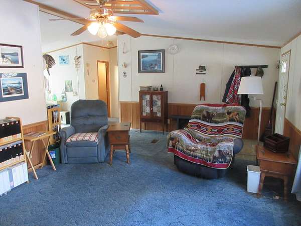 Est $1,563/moNice Redman doublewide situated on a very private lot consisting of 5.4 acres. The home is 3 bedrooms and two bathrooms. Master room has a private bathroom. Propane cook stove with oil heat. 900 sq/ft gambrel garage with storage above. Generator hook-up in garage to power home in event of a power outage. Very large well landscaped lawn with woods surrounding. The property is situated between coastal area and Augusta.