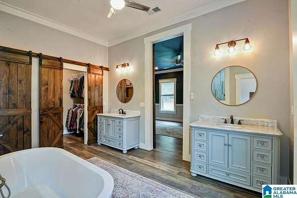 - Garden Tub, Linen Closet, Recess Lighting, Separate Shower, Separate Vanities, Sitting Area in Master, Split Bedroom, Split Bedrooms, Tub/Shower Combo, Walk-In Closets, Wet Bar