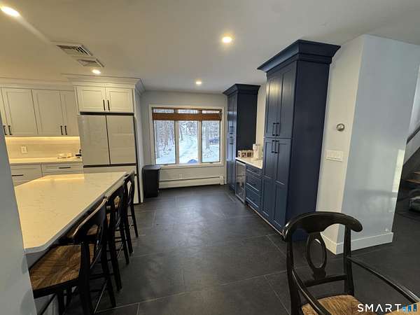 A contemporary colonial nestled on 2.99 private acres featuring 3-5 bedrooms & 3 full baths with a welcoming double-door entry into an open foyer. The living room, recently divided into two spaces, features dual sliders leading to a new 21x10 composite deck overlooking a fenced yard. Descend to the family room, highlighted by hardwood floors, a beautiful picture window, and a cozy fireplace. The dining room provides access to a covered deck and a remodeled kitchen equipped with quartz counters, farmhouse sink, glass tile/quartz backsplash, and high-end stainless steel appliances, including an 8-burner gas double oven. Recent updates include fresh interior paint, new flooring, remodeled main level bath, new trim/lighting, new garage door/opener, new composite deck & balcony, partially finished basement w/dehumidifier system, radon system, driveway lighting, and new gutters/fascia. Conveniently located on the main floor are an office or 4th bedroom and laundry room. The second floor unveils a primary suite with walk-in closet, bathroom with oversized tile shower, second closet, and sliders leading to a balcony, plus two additional bedrooms and a full bath. The massive lower level walkout with expansion possibilities, with potential for an in-law suite complete with a private entry and workshop. Additional features: 2 car garage + additional parking, 4-zone heating & updated well system. Great Hill Area-a must see! CA needs new condenser.
