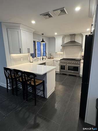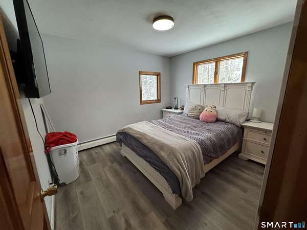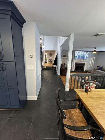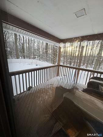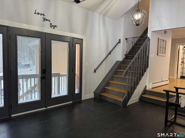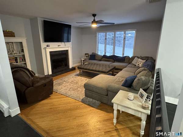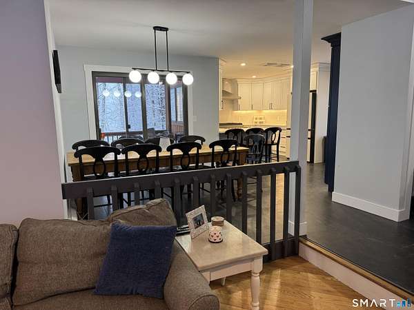 A contemporary colonial nestled on 2.99 private acres featuring 3-5 bedrooms & 3 full baths with a welcoming double-door entry into an open foyer. The living room, recently divided into two spaces, features dual sliders leading to a new 21x10 composite deck overlooking a fenced yard. Descend to the family room, highlighted by hardwood floors, a beautiful picture window, and a cozy fireplace. The dining room provides access to a covered deck and a remodeled kitchen equipped with quartz counters, farmhouse sink, glass tile/quartz backsplash, and high-end stainless steel appliances, including an 8-burner gas double oven. Recent updates include fresh interior paint, new flooring, remodeled main level bath, new trim/lighting, new garage door/opener, new composite deck & balcony, partially finished basement w/dehumidifier system, radon system, driveway lighting, and new gutters/fascia. Conveniently located on the main floor are an office or 4th bedroom and laundry room. The second floor unveils a primary suite with walk-in closet, bathroom with oversized tile shower, second closet, and sliders leading to a balcony, plus two additional bedrooms and a full bath. The massive lower level walkout with expansion possibilities, with potential for an in-law suite complete with a private entry and workshop. Additional features: 2 car garage + additional parking, 4-zone heating & updated well system. Great Hill Area-a must see! SOLD AS IS; CA needs new condenser.