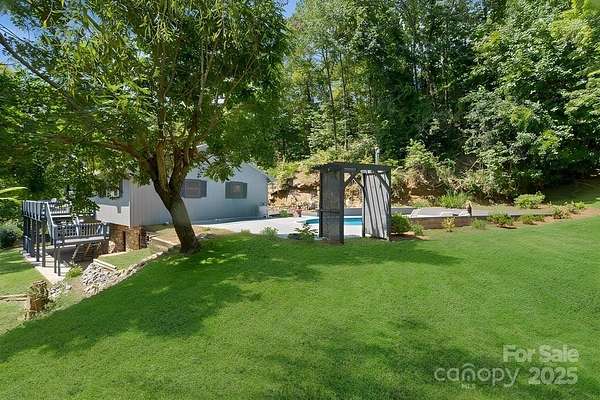 Discover your mountain retreat in the heart of Black Mountain! Located on almost 2 acres of land with mature trees and lush landscaping with plenty of flat open spaces and ample parking.The highlight of the outdoor space is the large swimming pool surrounded by the mountains, landscaping, and grassy areas for the ultimate outdoor fun! The home is move in ready and has fresh neutral paint, new carpet, new luxury vinyl plank, and refinished hardwood flooring among the many updates. The bathrooms have been remodeled with new tile, vanities, sinks and lights. The main level is designed for open concept living, with a stone fireplace as the centerpiece of the family room. The flow between living, dining, and kitchen areas makes entertaining easy and comfortable. Lower level has more bedrooms and secondary living space with and additional fireplace. Basement also has new paint, carpet and LVP flooring that extends to the lower outdoor patio area, yard and swing. Practical updates add peace of mind, with a recently pumped septic system and new radon mitigation. Whether you're searching for a permanent residence, mountain getaway, or property to host as a VRBO , this home offers it all. Close to charming shops, local dining, outdoor adventures and the interstate! Come see for yourself and make this gem your own. Showings start Thursday.