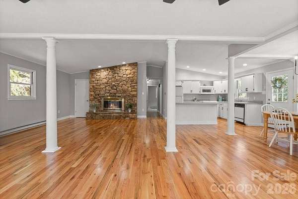 Great VRBO opportunity! Discover your mountain retreat in the heart of Black Mountain! Located on almost 2 acres of land with mature trees and lush landscaping with plenty of flat open spaces and ample parking.The highlight of the outdoor space is the large swimming pool surrounded by the mountains, landscaping, and grassy areas for the ultimate outdoor fun! The home is move in ready and has fresh neutral paint, new carpet, new luxury vinyl plank, and refinished hardwood flooring among the many updates. The bathrooms have been remodeled with new tile, vanities, sinks and lights. The main level is designed for open concept living, with a stone fireplace as the centerpiece of the family room. The flow between living, dining, and kitchen areas makes entertaining easy and comfortable. Lower level has more bedrooms and secondary living space with and additional fireplace. Basement also has new paint, carpet and LVP flooring that extends to the lower outdoor patio area, yard and swing. Practical updates add peace of mind, with a recently pumped septic system. Whether you're searching for a permanent residence, mountain getaway, or property to host as a VRBO , this home offers it all. Close to charming shops, local dining, outdoor adventures and the interstate! Come see for yourself and make this gem your own.