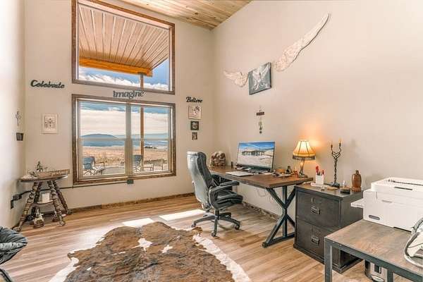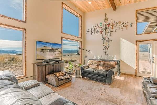 This custom 2024 mountain contemporary home sits on 20 acres just two minutes from the Village of Eagle Nest, blending modern comfort with true off-grid living. Built from Structurally Insulated panels, this home is comfortable year round and very energy efficient. Designed for easy, single-level living, the 4 bedroom, 2 bath layout is filled with natural light, enhanced by passive solar heating and oriented to capture sweeping views of the surrounding mountains, Eagle Nest Lake, Angel Fire Resort ski runs and abundant wildlife. The property is fully self-sufficient. Power is provided by an owned solar system with battery storage and a backup generator. A private well, septic system, and an owned 1,000-gallon propane tank ensure reliable utilities without dependence on public services. Starlink internet delivers high-speed connectivity, while the metal roof and low-maintenance siding provide durability and peace of mind in every season. A dedicated shed houses the solar equipment and battery system and also provides generous additional storage. Inside, toasty in-floor radiant heating makes winters cozy along with the natural passive solar heat. During summer months the house stays cool and comfortable when you open windows and allow for the fresh cool mountain breeze. Some furnishings are included. With over 2200 square feet, this home is great for entertaining. Got horses? This property is approved for up to four horses (zoned at two horses per 10 acres). There is plenty of room to add a barn or shop. A convenient RV hookup with an installed sewer connection adds flexibility for guests, travel setups or future expansion. The spacious carport at the front entrance offers covered parking for two vehicles. Can be easily converted to a garage. Outdoor enthusiasts - the location is exceptional: Angel Fire Resort is 15 minutes away and Red River Ski & Summer Area is just 20 minutes away. Eagle Nest Lake and the Cimarron River-renowned for award-winning fly fishing-are minutes from the property. Mild summers, dramatic sunrises and sunsets and year-round recreation make this an ideal mountain retreat or full-time residence.