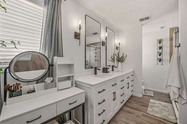 Discover this beautifully updated modern home set on an oversized lot, offering the perfect blend of space, style, and functionality. This 3 bedroom, 2 bath residence has been thoughtfully renovated throughout with clean lines, contemporary finishes, and inviting layout designed for today's lifestyle. The main living space is highlighted with vaulted ceilings, stylish fireplace, and cleverly designed hidden closet space that can serve as a small office or discreet Christmas tree closet and holiday storage. The light filled kitchen features high-end appliances, granite countertops, and custom storage cabinetry. In addition to the 3 spacious bedrooms, the home features a versatile bonus room--along with a dedicated workout area for convenient at-home fitness. The primary suite is private retreat with spa like features, including dual sinks, walk-in glass shower and custom designed closet. Ample storage space throughout the home ensures everything has its place, while the expansive acreage provides privacy, room to roam, and endless possibilities for outdoor living.