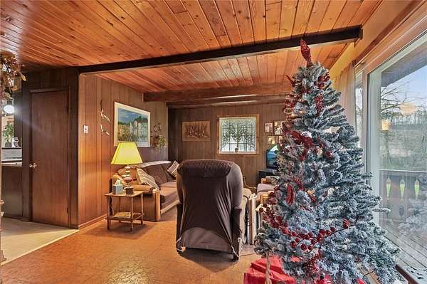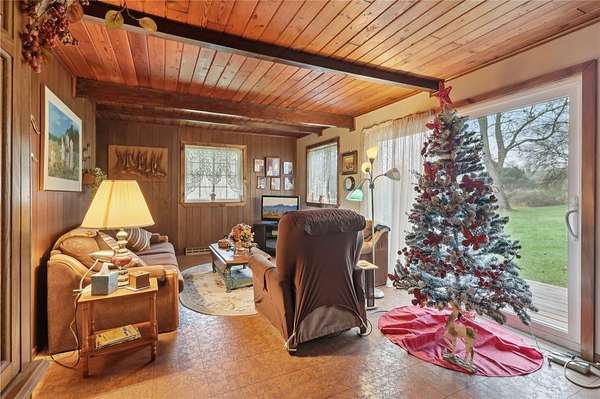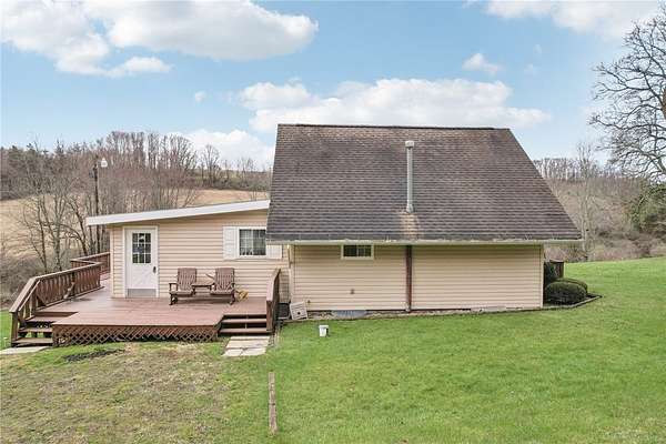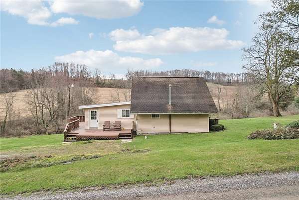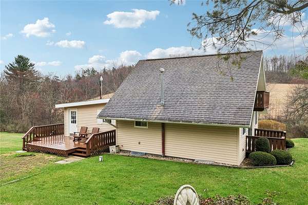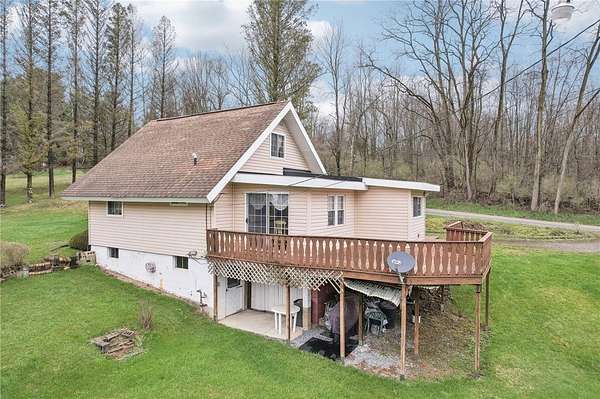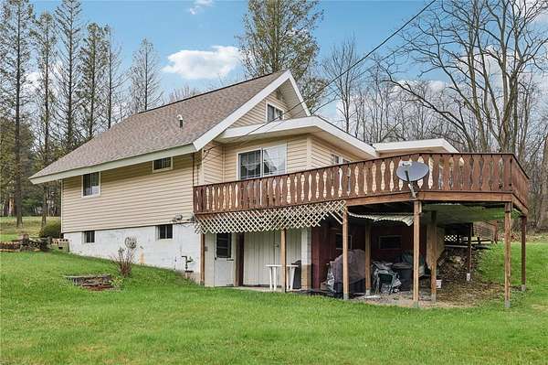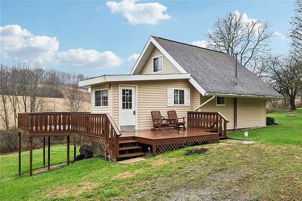 TRULY REMARKABLE! Seller has taken impeccable care of this cozy home that sits on an impressive 29 acres. You'll love all the natural sunlight in the dining room thanks to newer windows and patio doors. The kitchen makes excellent use of the space with a butterfly sink, plenty of cabinets, and ample countertop space. All appliances included! The wraparound deck overlooks the backyard and most of acreage, providing serenity for enjoying your morning coffee or the perfect place for entertaining on those summer afternoons that are just around the corner. An additional deck can be found through the 2nd set of patio doors in the living room. One-floor living is even possible with a first-floor bedroom and full bath. Upstairs you'll find the primary bedroom with its own private balcony and also the 3rd bedroom. Enjoy the current use of free gas for heating and cooking, well water, and a septic system... all of which combine for extremely low cost of living! Don't wait to tour this ONE!!!