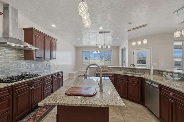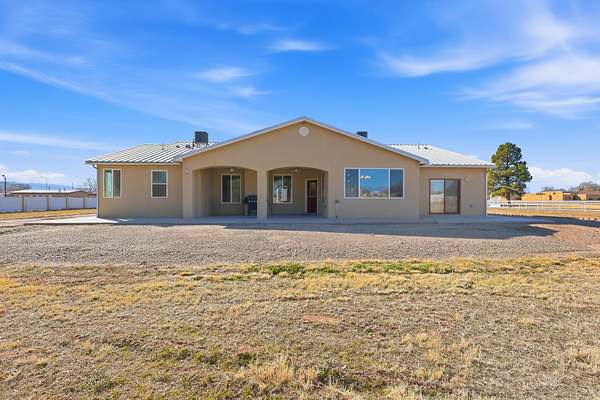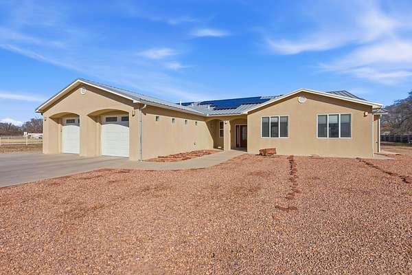 Discover exceptional space and versatility in the heart of Bosque Farms w/this impressive 3067 square foot home situated on 2.25 acres, including over an acre of irrigated land. This 5-bedroom, 31/2-bath property offers a spacious living room and the kitchen features granite countertops and stainless steel appliances. Abundant storage and thoughtful upgrades throughout the home, including energy efficient solar and tube skylights that fill the space with natural light. The updated primary ensuite offers a relaxing retreat with a jetted tub and double sink vanity. This horse property includes a large workshop with auto lift, RV wastewater connection, outbuildings, and a poultry coop. Country living at its finest, this property has too many features to mention!