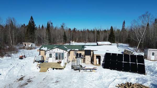 Dreaming of living off-grid like so many across the countryaEUR"or looking for a peaceful seasonal retreat? This unique 29-acre property offers 1,150 feet of stream frontage, providing excellent fishing for native brook trout and a beautiful natural setting rich with wildlife. The one-bedroom cabin has been lived in year-round by the last two owners and comes equipped with everything needed for off-grid living, including solar panels, an on-demand hot water heater, and a rainwater collection system (with a new, larger-capacity tank being installed). With extensive stream frontage, water supply is plentiful. The bathroom features a shower and bio-toilet, plus there is an additional outhouse on the property. Homesteading opportunities abound with a chicken coop, rabbit hutch, small barn, and pasture area already in place. The seller has recently remodeled the kitchen and expanded the living area, adding extra square footage for improved comfort. A new deck and additional outbuildings are also included. Enjoy true dark skies with no city light glow. The easterly property boundary is the U.S./Canada line, offering a truly unique setting. Located just outside the farming community of Monticello, Maine (population 726), this property provides privacy, self-sufficiency, and a peaceful rural lifestyle.