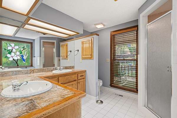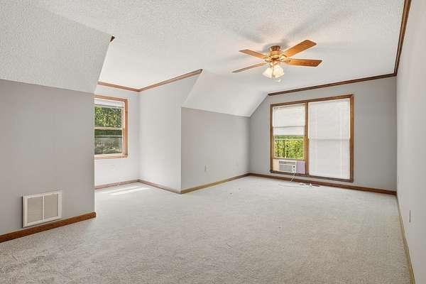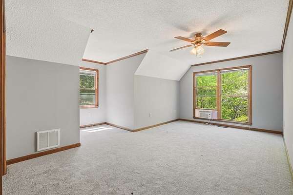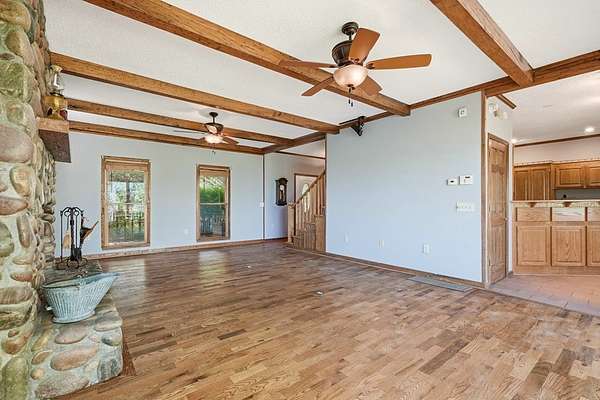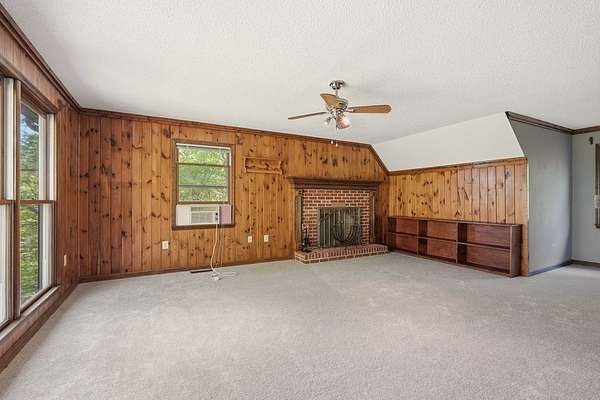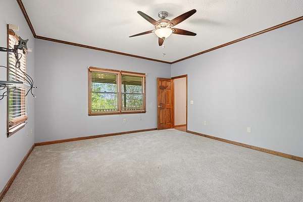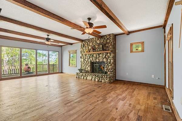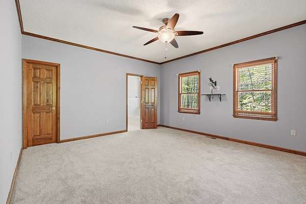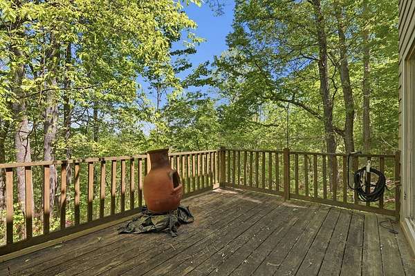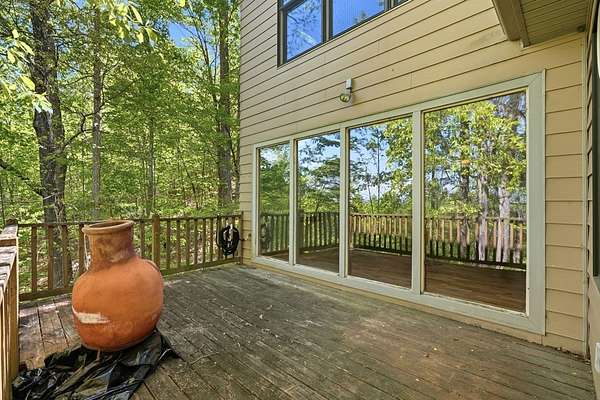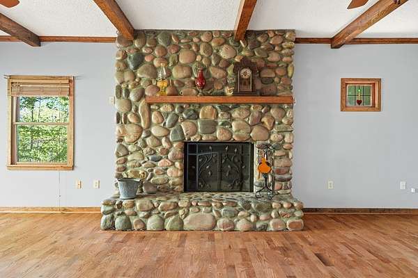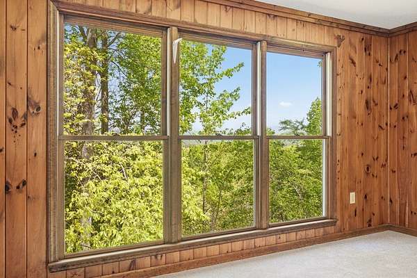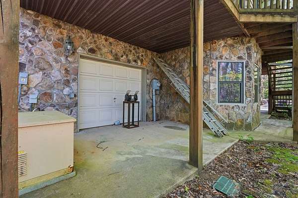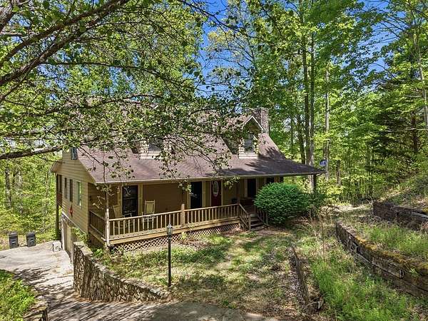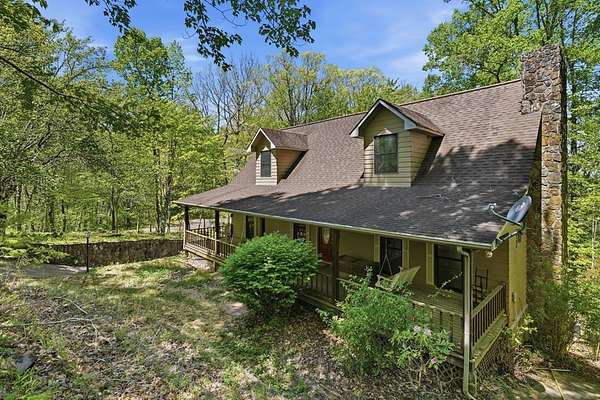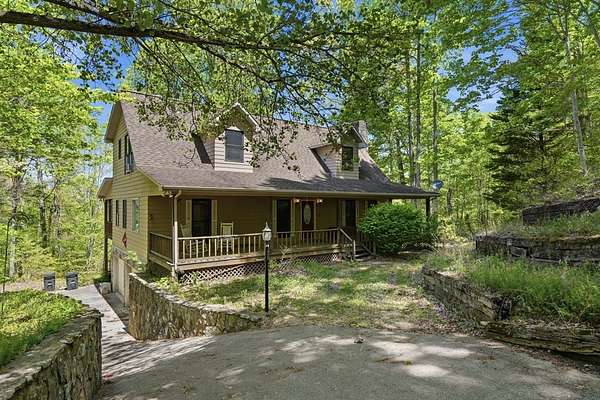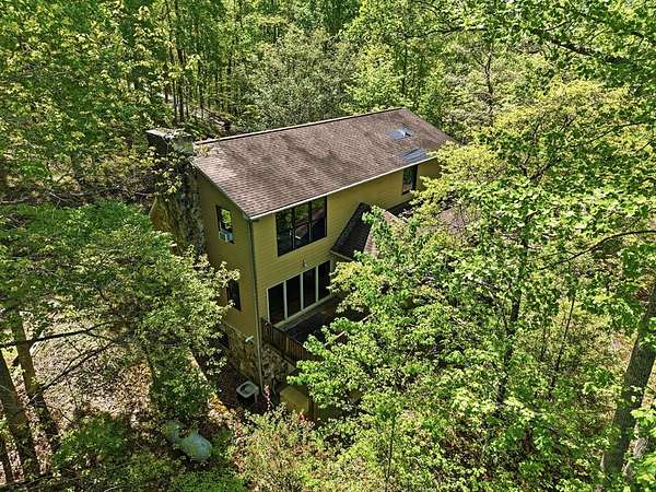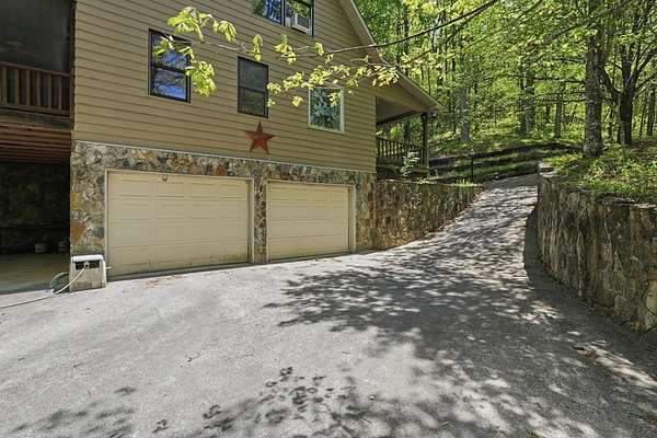 Private mountain retreat on 2.19 acres with the potential for outstanding year-round mountain views once selective tree trimming is completed. This spacious cabin-style home offers timeless character with warm wood interiors, exposed beams, and a striking stone fireplace as the focal point of the living area. The primary suite is conveniently located on the main level and features double closets, a soaking tub, separate shower, and ample space to unwind. Generously sized guest bedrooms provide comfort for family and visitors. Multiple decks and a screened porch create the perfect setting to enjoy the peaceful surroundings. Additional features include three garage spaces, a dedicated workshop with an attached garage, office/flex space, and generator hookups. A rare opportunity for buyers seeking privacy, space, and the chance to enhance a mountain property to its full potential. Estate-owned property being sold as is.