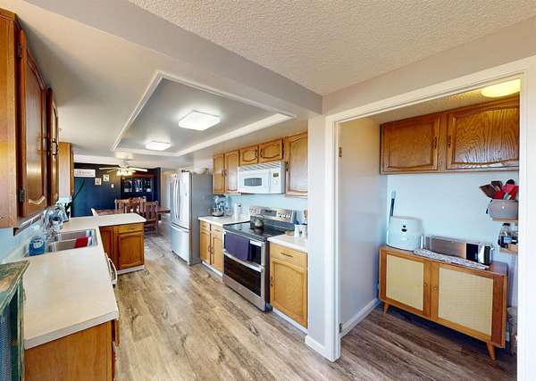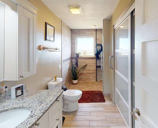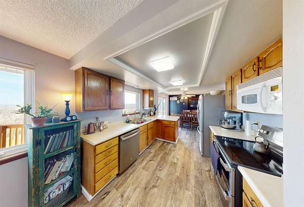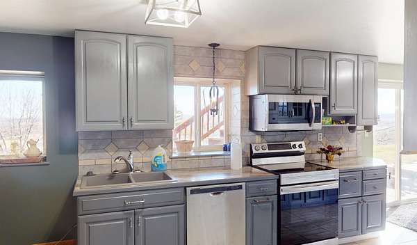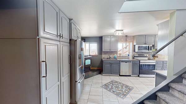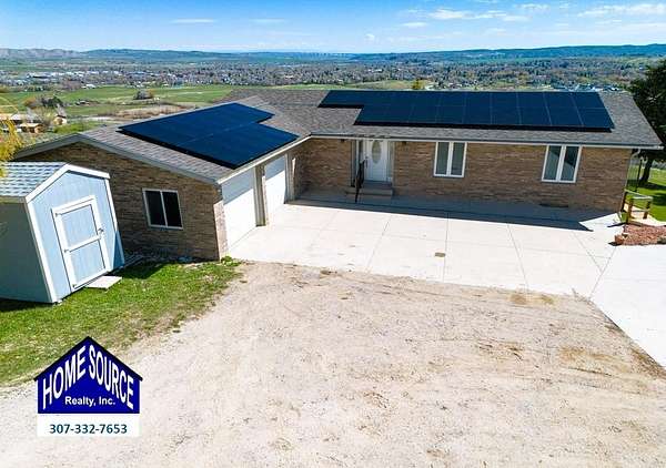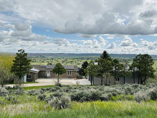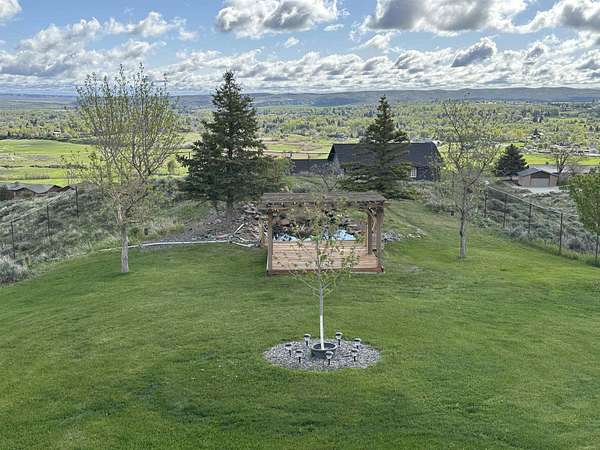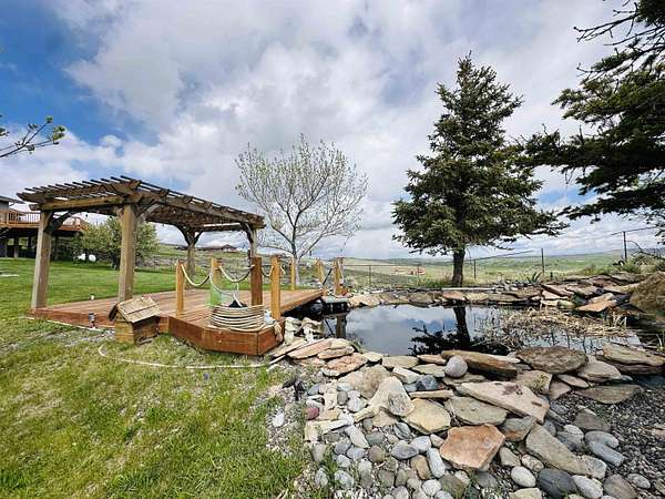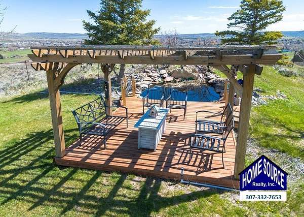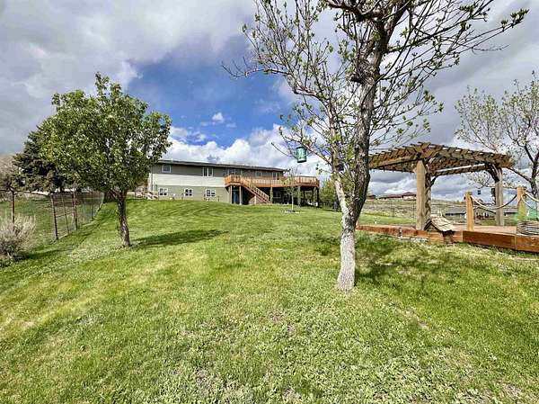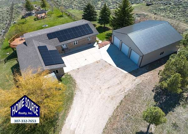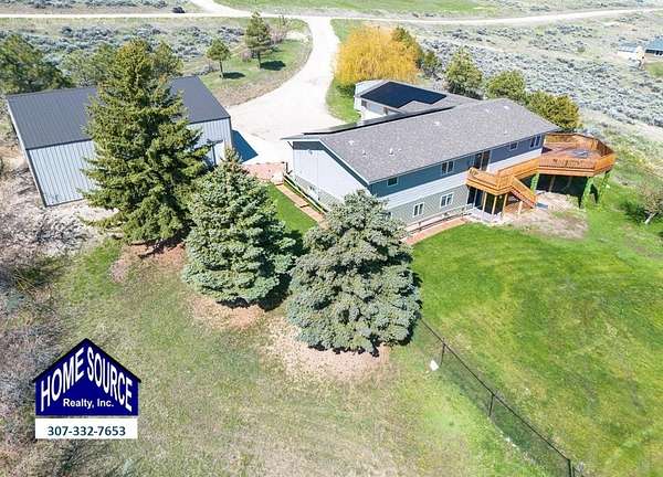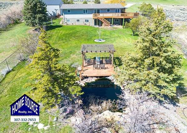 Wyoming dream living! Situated on approximately 3.14 acres in the highly sought-after Squaw Creek area, you see it all, from mountains, to the valley where herds of elk often bed, from treetops to town lights and green rolling hills in a panoramic view. The unique location and landscape provides unparalleled privacy, the home is tucked within mature landscape that blends into the rolling, natural hills, yet a convenient, close proximity to town location. A spacious home offering two full living quarters, two car attached garage, 40'x36' detached shop, mature landscaping and plentiful private well make this property an unrivaled value for the quality and location. The breathtaking setting offers an on top of the world feeling while being tucked within trees and foliage, wild native grasses and sage, yet still maintaining grand views of the Wind River foothills. There’s also a lush fenced, pet friendly backyard with automatic sprinkler system, pond with pergola dock, wraparound deck and covered patio. Built with a comfortable 3,000 sq ft of living space, all the rooms are sizable, with a floor plan that is easy to define, utilize and furnish. The main-level and the basement each have full kitchens, spacious family rooms, bedrooms and bathroom(s), and each has a walkout access to the deck/patio and finished yard. The floorplan will comfortably house a large family, or can easily serve as two separate dwellings. Additionally, there is a primary bedroom with en-suite bathroom that has a handicap accessible, curbless shower. This is a perfect opportunity to live in one half and rent the other, comfortably house extended family, utilize the additional space as a separate home business, create a homeschool area or just stretch out within your own home with a rec room, music/craft room, home gym, etc. The home features a warm, traditional aesthetic and a welcoming, homey feel, with upgrades and extras such as a brick veneer exterior, a built-in safe, an electric fireplace with a tile surround, a pellet stove, a heated jet tub in the main bathroom and new tile in bathroom showers and floors. One kitchen has a walk-in pantry, the other has refinished cabinetry, tiled backsplash and matching tiled floors. Both offer stainless steel appliances. Additional updates include an approximate 10-year-old roof, 440' private well with new pump/pipes as of 2019 and mini-split cooling in the primary bedroom. Located in a prime location for outdoor enthusiasts, this home is positioned near the intersection of Squaw Creek Road and Sinks Canyon Road—the gateway to thousands of acres of public land, trails and wildlife. It largely operates off-grid; a solar system keeps monthly electricity bills low even with electric heat. In addition to features such as a private well for drinking water, septic system, solar for the majority of electricity use, and pellet stove for supplemental heat, this home operates independently of public systems and at very little monthly cost. The home also comes with a whole-house gas Generac® generator for backup. The impressive shop is insulated, has concrete floors and has three 9'x9' hyper-insulated (exceptional R-value) overhead, automatic doors. Between the attached two-car garage and the detached shop, the property can store 8 cars inside. The large paved driveway across the full front of the home keeps it clean and maintained throughout the season. This outstanding Lander estate offers a traditional ranch-style design situated in a park-like setting. It features mature landscaping and outbuildings that would be incredibly expensive to build new today, making this an excellent value in a prime location. You get the convenience of being 10 minutes to town with the feeling of thousands of green acres right outside your door.