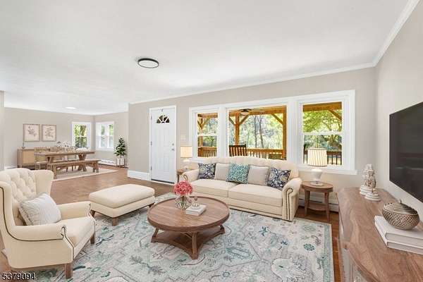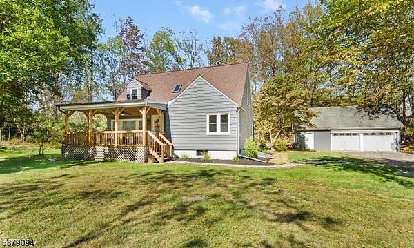 Year Round or Weekend Retreat-a pastoral country home, just minutes off Rt 80. You will love this charming, newly renovated Custom Cape Cod w/fantastic footprint & property, set back from the road w/over 2AC of mostly level property surrounded by greenery.The wide & welcoming rocking chair front porch is perfectly positioned to view your own private pond where you can rock, relax or simply watch the seasons unfold. Sit by the water's edge, listening to the croaking of frogs, kayak, fish or skate on the frozen pond. Front entry to an open & spacious great room-versatile living space for dining & entertaining. Kitchen w/gorgeous counters & cabinets, SS appliances, pantry, & custom benches for a cozy breakfast nook. 1st floor primary bdrm & full bath complete this floorplan. 2nd floor w/3 more bdrms, full bath, loft sitting area, addtl storage in the eaves. A full, expansive walkout basement for laundry & utilities-high ceilings & unfinished recreation space equal endless possibilities. A long & winding driveway provides plentiful parking. Detached, 2-Car Garage w/full level of loft storage/expansion potential, room w/electric in tandem w/garage, perfect for a workshop. Door from Kitchen to backyard surrounded by mature trees & plantings. Enjoy the tranquility of your own personal outdoor retreat.