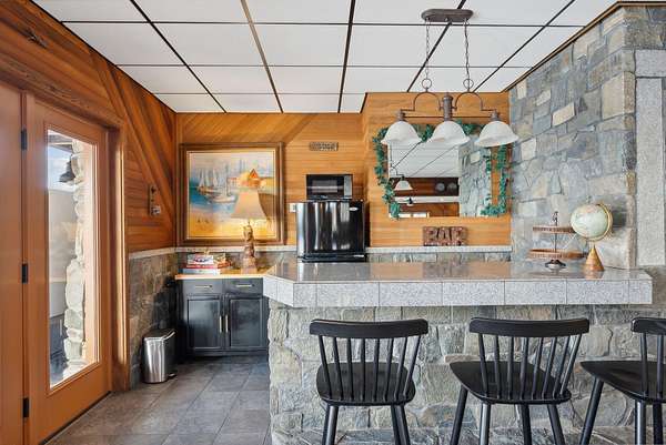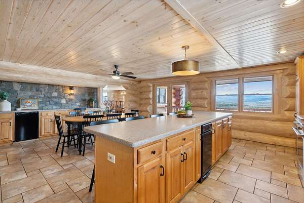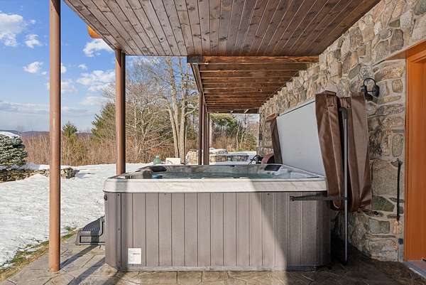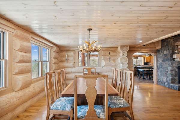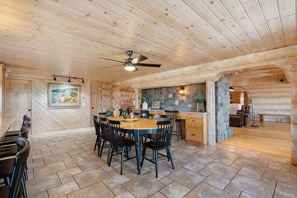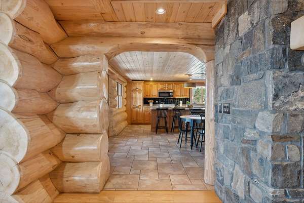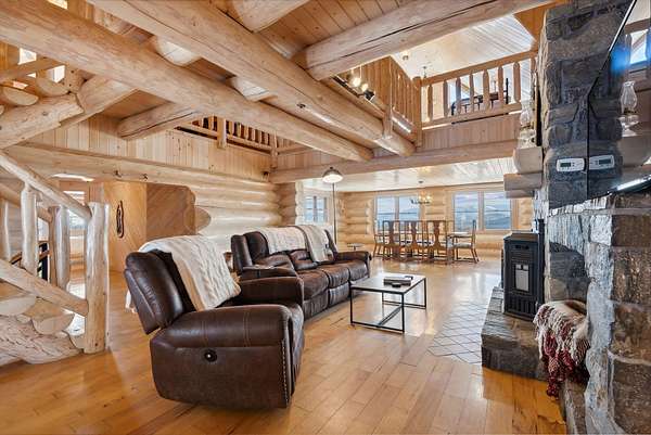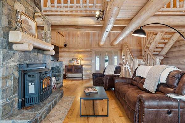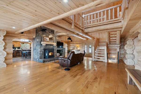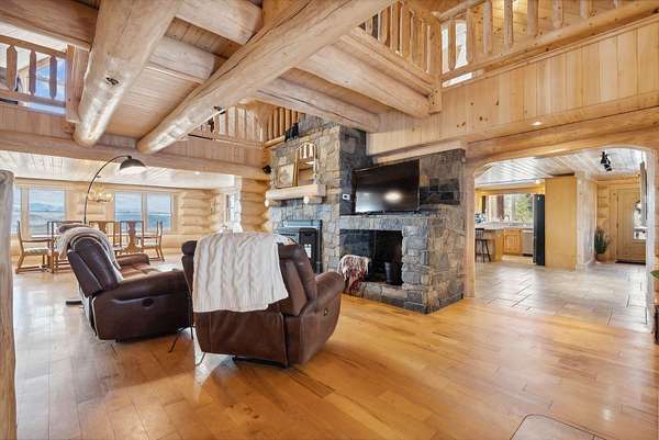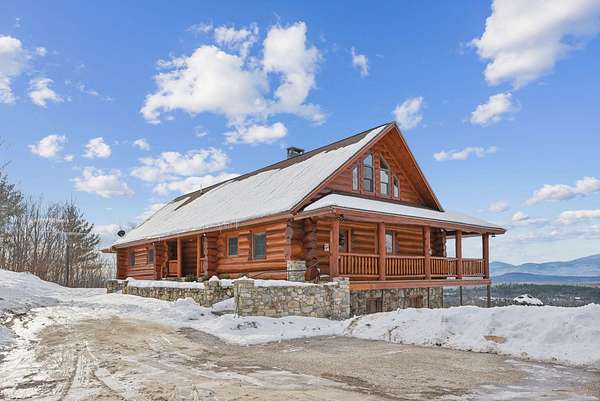 Call or Text Carol 207-240-1641 www.carolchaffee.com Welcome Home to Lovell Maine's breathtaking mountain range views with gorgeous sunsets, including views of the renowned "Kezar Lake." This spacious log home is constructed from locally hand-hewn logs, each sanded to a smooth finish with pickled interior surfaces. The home is situated at the top of the hill with polished stone patio, gardens, and beautifully landscaped acres. There is a large eat-in kitchen with island and direct access to covered porch. The living room and dining room have an open concept to view the catwalk on the second floor along with a custom stone fireplace that has an insert pellet stove to heat the entire living area. The primary bedroom has a private bath, walk-in closet, and a large private covered porch area. The 2nd bedroom, full bath, storage closet, mudroom, and laundry room are also located on the first floor. On the second floor there are two large bedrooms on either end with vaulted ceilings with large windows to capture the views and natural light, a full bath and catwalk to the open office/studio that highlights the beautiful views The floors are wood and tiled with radiant heat on the first floor. The staircase to the lower level has wrought iron detailing and brings you to the large game room which includes bar, sauna, and in-law apartment. The patio doors open to a beautiful, polished stone patio and hot tub. The home has a full house generator and solar energy, and a 3-car garage with an unfinished area above for added space. Located in the beautiful western mountains of Lovell Maine, this property is close to all 4 season outdoor activities! Sunday River and Pleasant Moutnain Ski Areas, Kezar Lake, North Conway, NH, Portland, and the White Mountain Regional Airport
