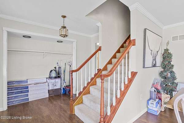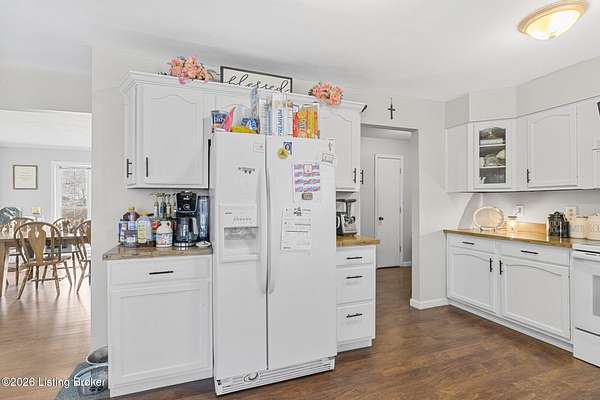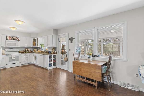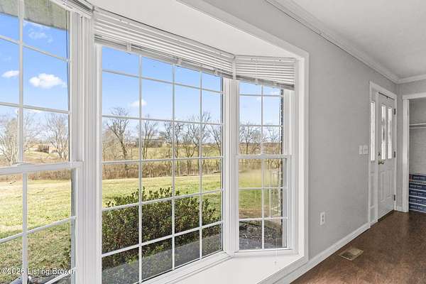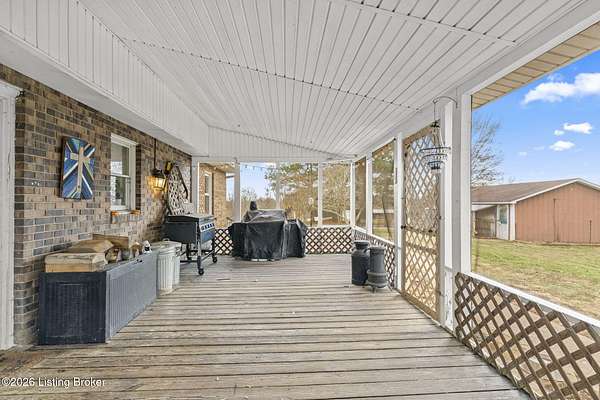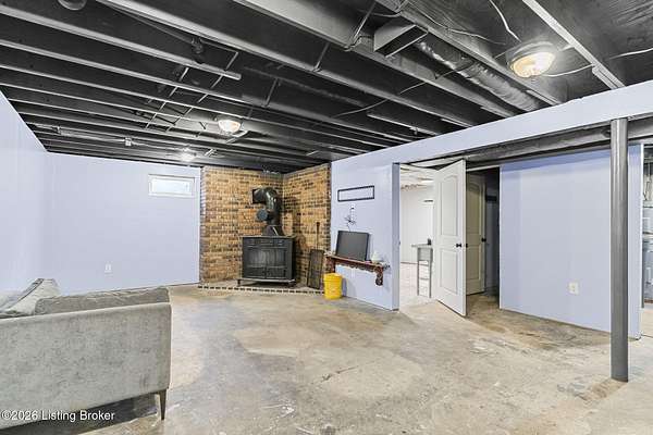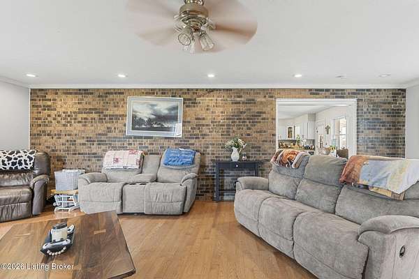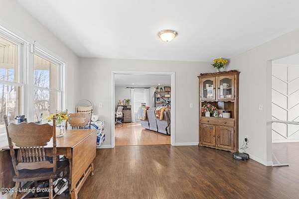 Tucked away on a quiet lane in Worthville, this expansive brick two-story home offers a rare combination of interior space, usable land, and peaceful surroundings. From the moment you step inside, you'll notice the thoughtful layout designed for both everyday living and entertaining. The main level features a large eat-in kitchen, a formal dining room, and an oversized family room highlighted by a fireplace and exposed brick accent wall. Also on the first floor is a primary bedroom with its own ensuite bathroom and spacious walk-in closet, along with a convenient half bath and dedicated laundry room. The upper level provides three additional bedrooms, a full bathroom, and generous storage and closet space, all with standard ceiling heights throughout. Downstairs, the full walkout basement expands your living options even further. Partially finished, it includes a family room, two additional flex rooms ideal for office space or extra bedrooms (no ingress/egress), a full bathroom, and a storage area that was previously used as a commercial kitchen. Outdoor living is just as impressive. Unwind on the back porch while overlooking a backyard with plenty of flat space. The property spans over four acres of mostly level, fenced pastureland and includes a barn suitable for livestock or additional storage. A detached two-car garage adds even more room for vehicles, equipment, or workshop space. With a full bathroom on every level, abundant indoor and outdoor space, and a setting that feels both private and serene, this property delivers character, versatility, and functionality in one exceptional package. Schedule your private showing today and experience everything this home has to offer.