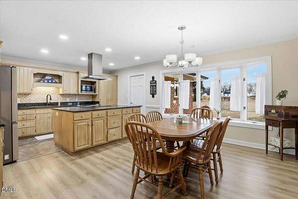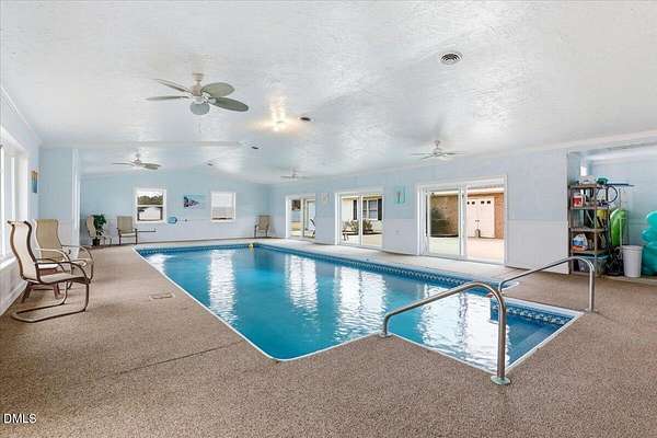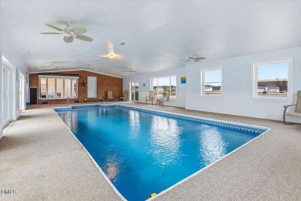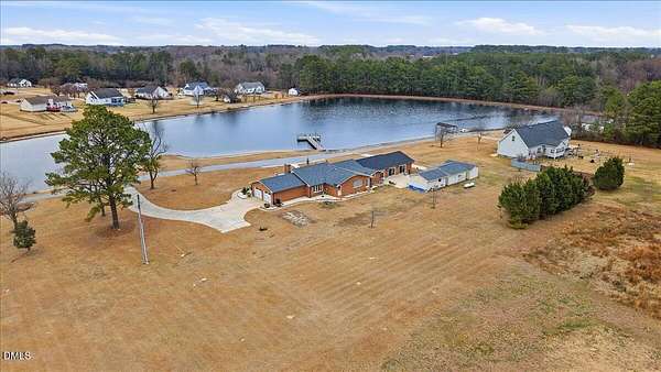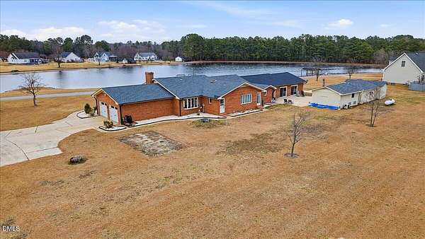 Brick ranch charm meets rare amenities in this one-of-a-kind property overlooking a serene, oversized pond. Situated on just under 2 acres, this home offers space, privacy, and features you simply don't see every day. The main home features 3 bedrooms, 2 full bathrooms and an attached 2-car garage. The spacious kitchen is the heart of the home with a large center island, granite countertops, and ample cabinetry. Pond views are your backdrop whether you are relaxing in the living room or rocking on the front porch. One of the standout features is the indoor heated swimming pool-perfect for year-round enjoyment and entertaining, regardless of the season. Three new sliding glass door units adorn the back side of the pool room where you can step outside on a large patio to enjoy the sun and an outdoor living space. The detached in-law suite includes a living area with kitchenette, a bedroom with closet, and a full bathroom. Additionally, the detached in-law suite has its own driveway and 1 car detached garage. With a little TLC, this space offers great potential for guests, multigenerational living, or future income opportunities. Peaceful views, generous outdoor space, and truly unique features make this property a rare find. Bring your vision and make it your own. Just minutes to Hwy 70, I95 and the new Eastfield Crossing Shopping Center.