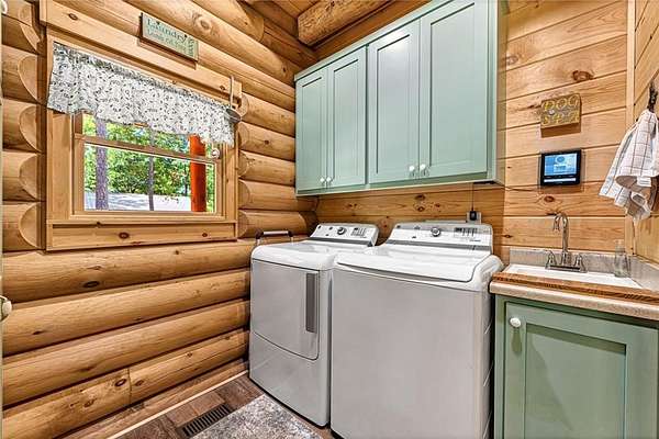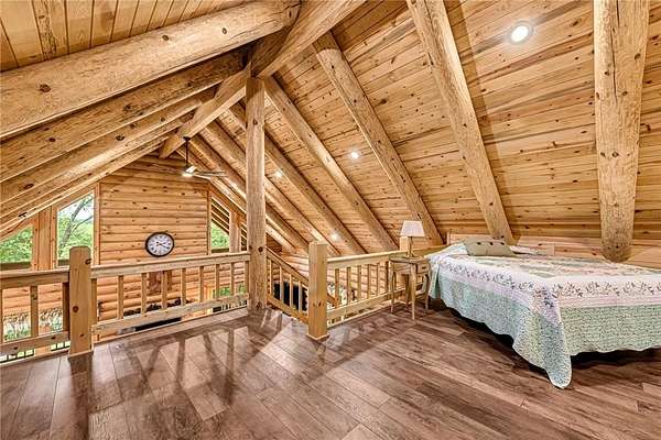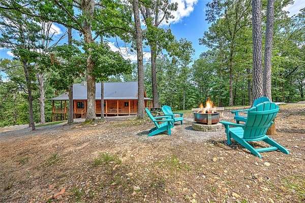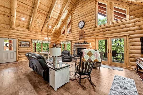 Escape to your own Ozark haven on approx. 15 wooded acres between Eureka Springs and Rogers. Just 5 minutes from the Clifty boat ramp, this property delivers year-round access to fishing, boating, hiking, and lake fun. The stunning log cabin offers an open living area with a cozy fireplace and a main-level primary suite with private bath. Upstairs, a spacious loft with its own bathroom makes an ideal bunkroom, game room, or second living space. Relax on the wrap-around porch overlooking peaceful wooded views--perfect for morning coffee or evening cookouts. A separate guest house adds excellent rental or in-law potential, while the 26'x30' workshop/garage in the walk-out basement provides great storage or project space. With quick lake access, abundant wildlife, and easy proximity to downtown Eureka Springs, this is the ultimate Beaver Lake lifestyle retreat.
