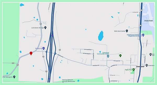 Fayetteville is expanding south into Greenland, and this 4.22 acres of prime commercially zoned property is ready to play a part. The region is exciting and growing and any number of enterprises can thrive on this land just off Interstate 49, including a wide range of commercial uses concerned with retail trade and consumer services; amusement and entertainment establishments; automotive and vehicular service establishments; transient sleeping accommodations; drive-in stores; eating and drinking places; financial institutions; and offices. Rolling green hills provide a picturesque setting, with nearby residential neighborhoods and Kessler Mountain Regional Park. With just quick drive up the I-49 to all that Fayetteville has to offer, this commercial land opportunity is golden!