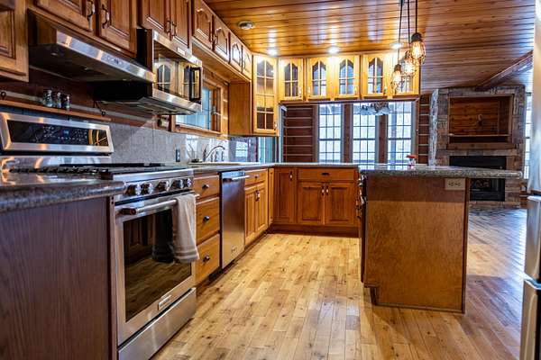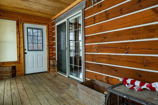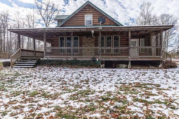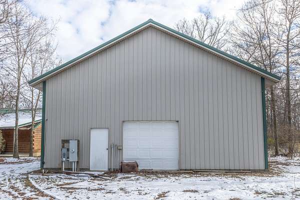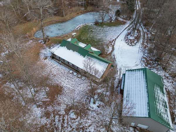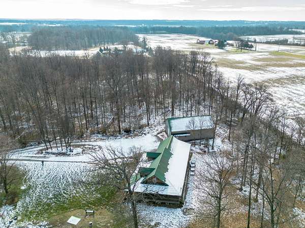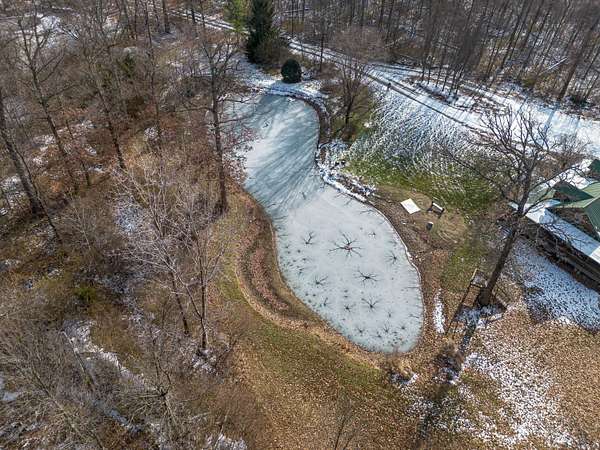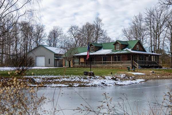 Seven Hundred feet off the road is this completely secluded 3 Bedroom and 2.5 bath custom-built log home. Take in all the views of the pond and nature with the covered, wrap around porch. The home features an open floor plan with the focal point in the beautiful stone, gas fireplace. The kitchen features granite counter tops, custom cabinetry as well as the included appliances. First floor master suite includes an oversized walk-in shower and closet. There is an enclosed porch out back that spans the entire length of the home, with a walk out covered patio. An attached, two car garage with overhead storage also compliments the home. The insulated and heated 36X56 pole barn is a complete package with two lofts, two overhead doors, a full bathroom and completely concreted. This fabulous setting spreads across three separate parcels and encompasses a total of 11.84 acres in Triad School District.