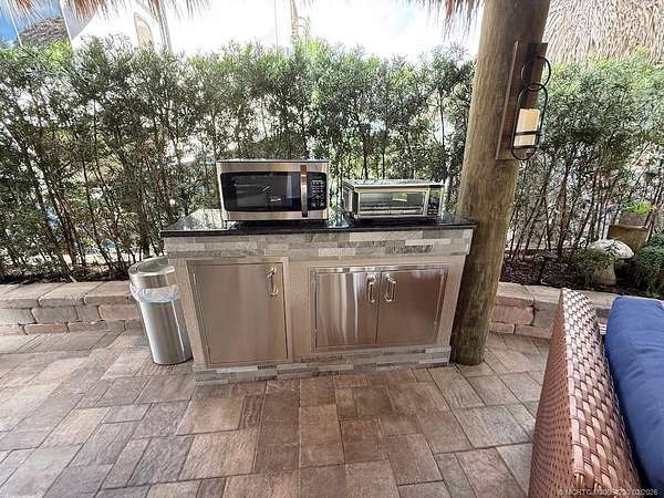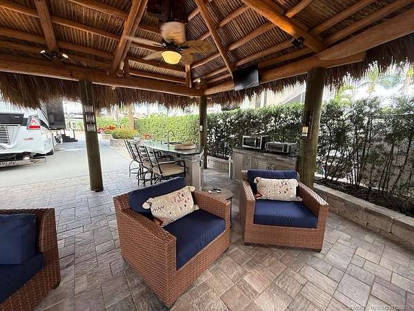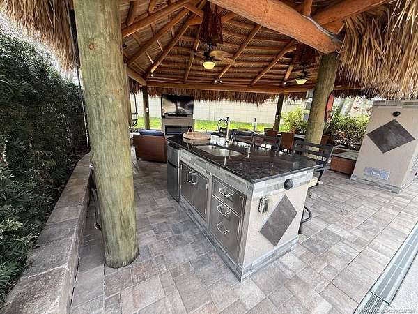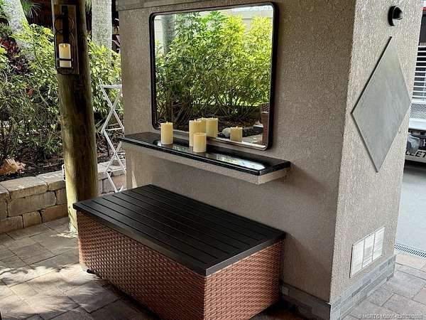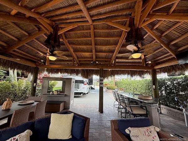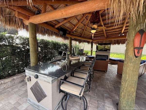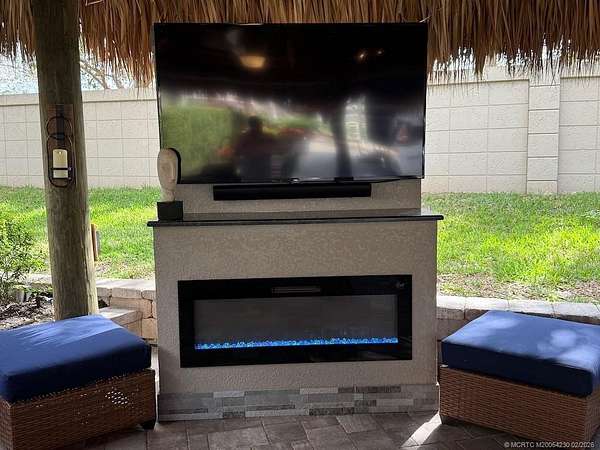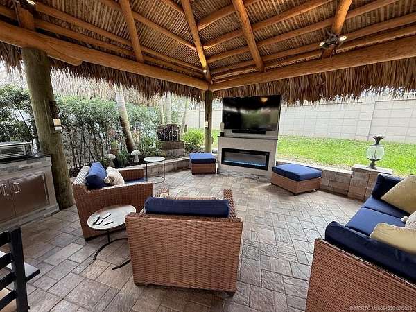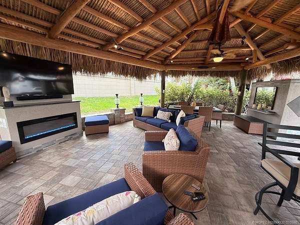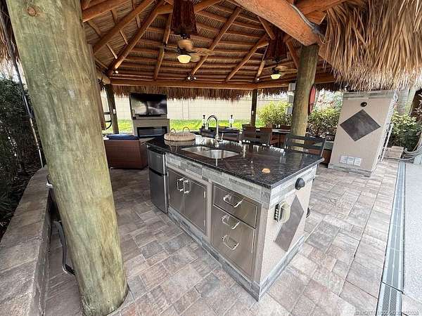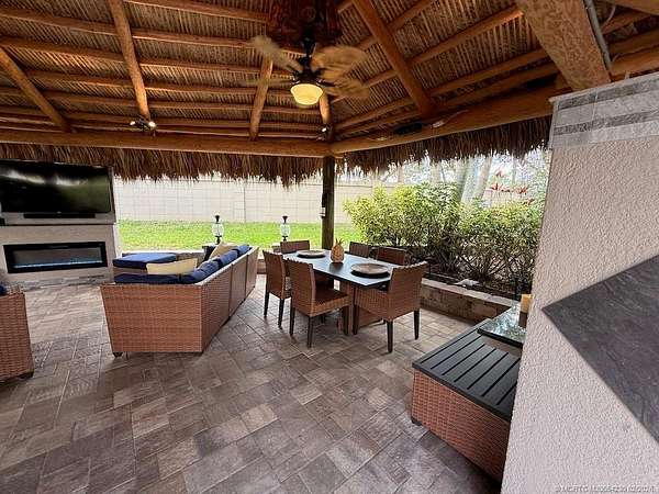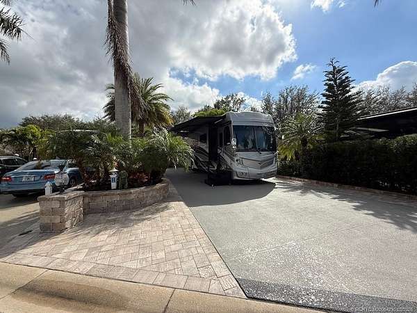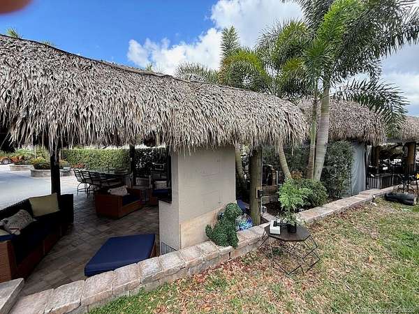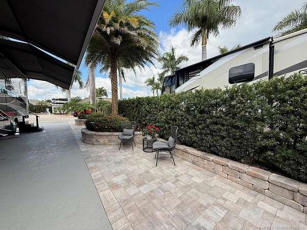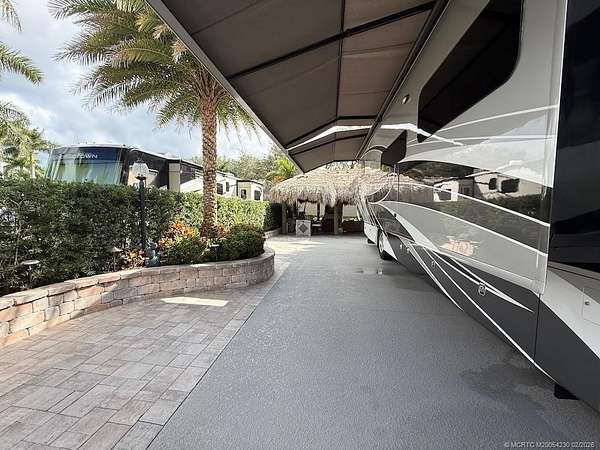 mmaculate and move in ready! This spacious 2,868 sq. ft. lot offers the perfect blend of comfort and style, making it feel just like home. The large tiki hut is beautifully designed with a decorative fan pole and provides an ideal space for relaxation and entertaining. Inside the tiki, you'll find a well-appointed galley kitchen with granite countertops and bar, a built-in electric fireplace, and a wall-mounted flat-screen TV-perfect for cozy evenings. A custom storage unit with decorative shelving adds both functionality and charm. The space is tastefully furnished with a dining table and chairs, as well as a comfortable sofa and seating area for ultimate relaxation. The extra-wide lot offers plenty of room for entertaining in a private, tropical setting. Priced to sell, this exceptional property is a definite must see!