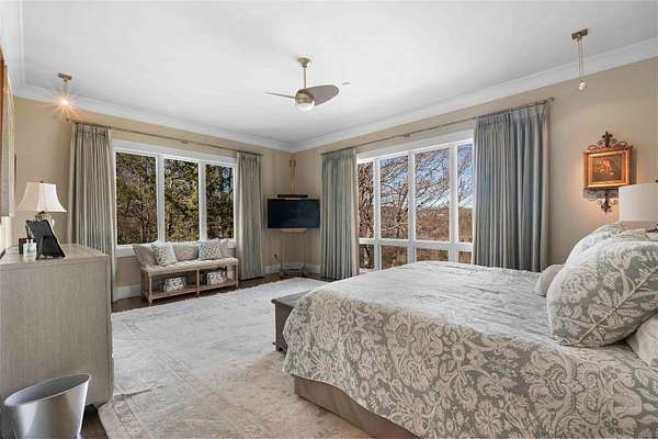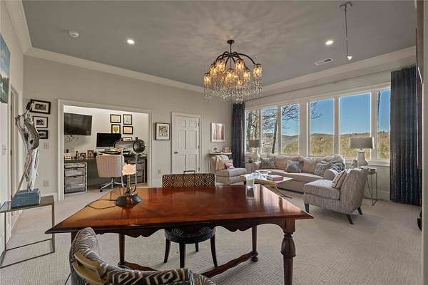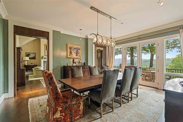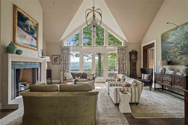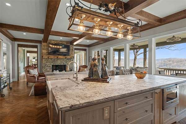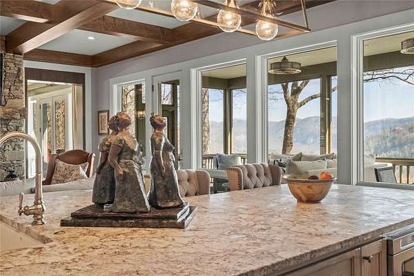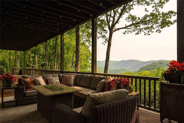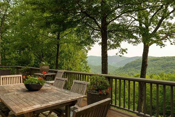 Discover View Point-an exceptional retreat tucked away in the serene community of Cedar Hill. This incredible 4 bedroom home spans almost seven private acres, nestled on two lots, offering breathtaking views of Laurel Knob and Cow Rock in the distance and backing up to High Hampton conservation lands. Originally designed by Platt Architecture, the property was expertly renovated in 2016 under the guidance of renowned architect Jim Fox. Inside, you're greeted by a space designed for both comfort and entertainment. The chef's kitchen is equipped with a suite of Viking and Bosch appliances, oversized kitchen island, handmade zinc range hood with antique mantel and warming shelf with heat lamps and wine fridge to make meal preparation a joy. The keeping room provides a cozy atmosphere for gathering with friends and family. Adjacent to the kitchen is the formal living room and dining room, perfect for more intimate gatherings or special occasions. The main level of the home features the luxurious primary suite with a spa-like bathroom and sweeping mountain views. Downstairs, you'll find even more space to unwind, with an additional living room, two generously sized bedrooms, an office all with en suite bathrooms. The current music room offers flexibility, and kitchenette, just off the office, could accommodate live-in caregivers or guests. The home's design allows for plenty of wall space to display your fine art collection, with custom lighting that illuminates each piece to highlight its beauty. Throughout, the partially furnished home has been meticulously maintained, with upgrades such as a new built-in dehumidifier, HVAC system, and relatively new water heaters and furnaces that support a multi-zoned climate control system for maximum comfort. The dedicated laundry room with new LG washer and dryer and pantry offer convenience, and the three-car garage features new epoxy flooring, just steps away from the kitchen. With two expansive decks and formal tiered garden, the outdoors effortlessly merges with the interior. Cedar Hill is conveniently located just a short distance from the crossroads of Cashiers, NC, Ingles grocery store and across the street from Cedar Creek Club (membership by invitation) which adds the option for additional amenities for exceptional living. Come experience View Point at 170 Old Hunters Run in Cedar Hill -a one-of-a-kind mountain retreat that offers both tranquility and luxury.