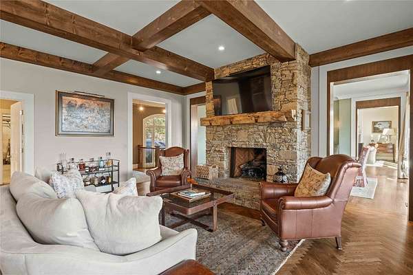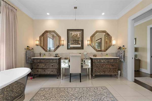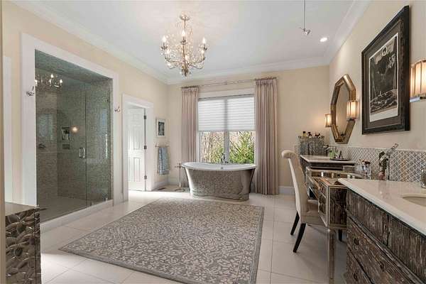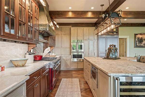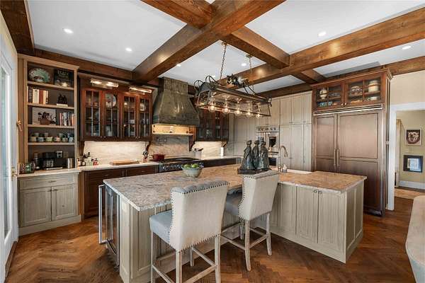 - Beamed Ceilings, Built In Features, Double Vanity, Eat In Kitchen, Entrance Foyer, Granite Counters, High Ceilings, Kitchen Island, Pantry, Separate Formal Dining Room, Soaking Tub, Walk In Closets