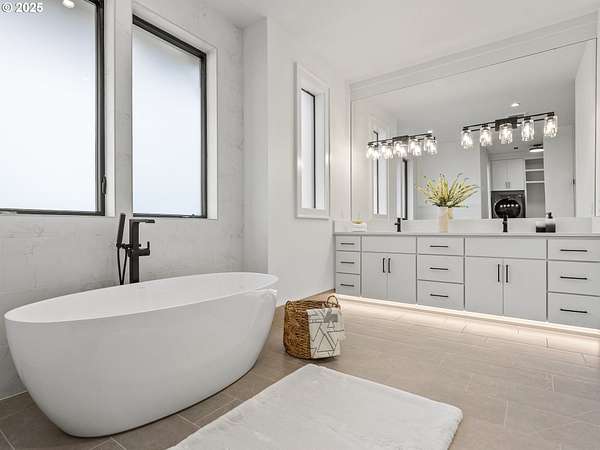 - Ceiling Fan, Engineered Hardwood, Garage Door Opener, High Ceilings, Laundry, Soaking Tub, Tile Floor, Vaulted Ceiling, Wallto Wall Carpet, Washer Dryer