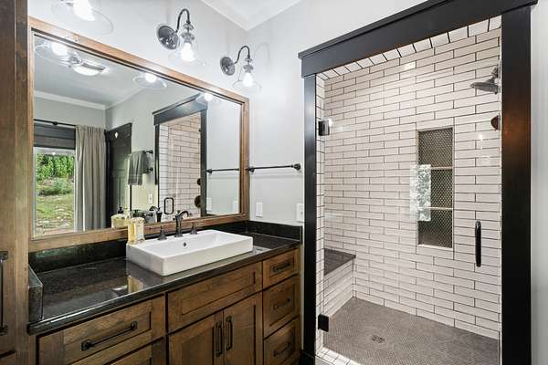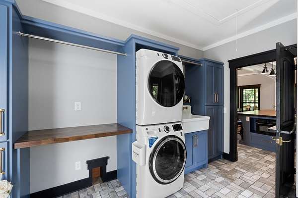 Extras include a custom mudroom, laundry room with built-in bench and farm sink, washer + dryer, refrigerator, built-in security camera system, commercial grade HVAC system with lifetime warranty, and a split unit HVAC for the crawlspace. Full height crawlspace provides tons of extra storage!