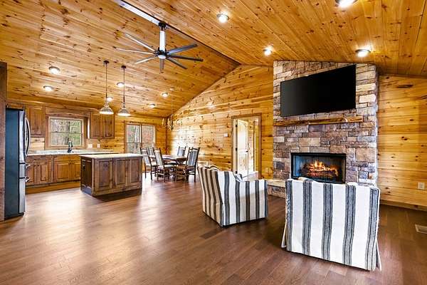 Step inside to a bright, open-concept living space featuring warm wood accents, vaulted ceilings, and expansive windows that bring nature in. Discover modern mountain living at its finest in this beautifully crafted 4-bedroom, 3-bath cabin tucked within the desirable Stuart Mountain community of Mineral Bluff. Built in 2021 and set on 1.83 private acres, this home blends contemporary finishes with a serene, wooded backdrop, complete with a gentle creek running along the rear of the property for the perfect North Georgia ambiance. The well-appointed kitchen flows seamlessly into the great room, creating an inviting space for gatherings, weekend retreats, or full-time living. With nearly 2,700 square feet spread across two levels, the home offers exceptional functionality. The primary suite boasts a spacious layout and a modern bath, while the additional bedrooms provide ample accommodations for guests or family members. Downstairs, a second living area offers great flexibility, ideal for game nights, a bunk room setup, or a private retreat. Outdoor living is equally impressive with two levels of covered decks overlooking the peaceful forest and creek--perfect for relaxing, dining al fresco, or adding the outdoor amenities friends and renters love. Just 20 minutes from downtown Blue Ridge, this property offers easy access to dining, shopping, hiking, Lake Blue Ridge, and all the attractions that make this area one of the Southeast's top getaway destinations. A Strong Investment Opportunity: With its 4-bedroom layout, modern construction, generous square footage, and private setting, this cabin checks all the boxes for an income-producing vacation rental. The location offers both seclusion and convenience, key drivers of high occupancy in Mineral Bluff and surrounding mountain communities. Whether you're seeking a profitable short-term rental, a second home, or a full-time retreat, 170 Ross Drive delivers the mountain lifestyle at exceptional value.