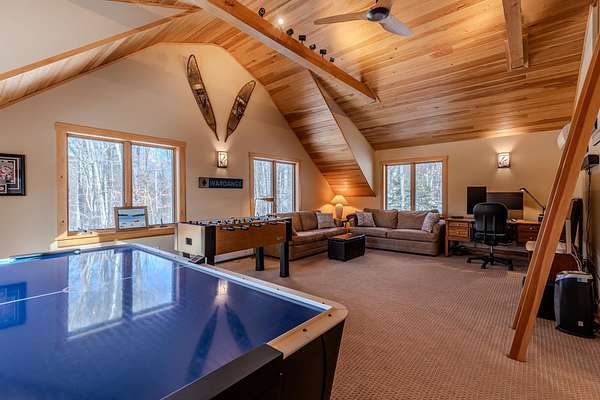 Welcome to your year-round Vermont retreat at 170 Scott's Landing, Ludlow. A rare opportunity to enjoy privacy, views, and four-season recreation overlooking Lake Rescue. Tucked away in a serene hilltop setting, this 3-bed, 4-bath home offers the perfect balance of seclusion and convenience, with Okemo Mountain views and a private shared dock on Lake Rescue for your powerboat and effortless summer fun. Designed for both everyday living and entertaining, the home features an open-concept main living space highlighted by a striking stone fireplace, large windows, and skylights that flood the room with natural light while framing the surrounding landscape. The kitchen with island and breakfast bar flows seamlessly into the living and dining areas, making it easy to gather family and friends after a day on the lake or the slopes. The built-in window seat and multiple seating areas provide wonderful spots to curl up with a book or entertain large groups. A well-appointed mudroom with radiant heat, gear storage, and a built-in boot dryer is ideal for Vermont living, while the spacious primary suite provides a retreat at the end of the day. With three bedrooms and four bathrooms, there is plenty of space and flexibility for guests and family alike. Most importantly, the new addition includes an game room featuring air hockey, foosball and a TV area. Step outside to enjoy beautifully maintained perennial gardens, two back decks, a hot tub, and a heated in-ground pool, set against peaceful mountain views that enhance the home's tranquil atmosphere. Additional features include an two-car garage with a 50 AMP EV charging outlet, a small shed for extra storage, and ample outdoor space to relax and unwind. Whether you're looking for a year-round residence or a secluded getaway close to skiing, hiking, and lake activities, this property delivers the Vermont lifestyle so many seek. Schedule your private showing today.