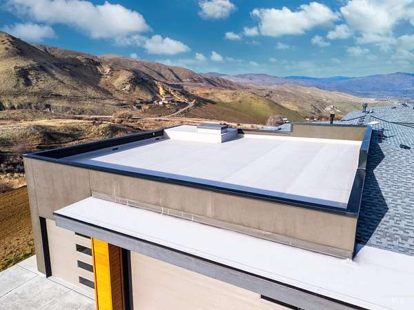 STUNNING MODERN ranchette retreat w/ panoramic VIEWS overlooking 12+ ACRES w/ ROOFTOP deck just 20-25 minutes from BOISE & EAGLE. Perched on Horseshoe Bend Hill with commanding views of town, the pristine valley, and Bogus Basin, this custom-built masterpiece offers an unrivaled blend of luxury, privacy, and Idaho outdoor living. Thoughtfully designed as a showcase home, every detail reflects quality craftsmanship and modern elegance. Enjoy soaring 14-ft. ceilings in the living room, where expansive picture windows frame breathtaking vistas in every direction. A chef's kitchen awaits with a gas range, quartz countertops, and custom soft-close cabinets. The open-concept layout is anchored by commercial-grade LVP and kerfed solid-core doors throughout. The primary retreat is a sanctuary with sweeping views that greet you each morning. Cozy up in winter as snow falls across the hillsides and enjoy warm summer evenings on the impressive 1,100 sq. ft. rooftop deck, wired for a hot tub and designed for sunset dining, stargazing, and taking in the valley below. You will love watching deer and wild turkeys roam freely across the property year round. A roomy three-car garage and abundant storage ensure space for all your recreational gear, making this the perfect launch point for all your Idaho adventures to McCall & Brundage Moutain, Cascade & Tamarack Resort, Garden Valley, and beyond!