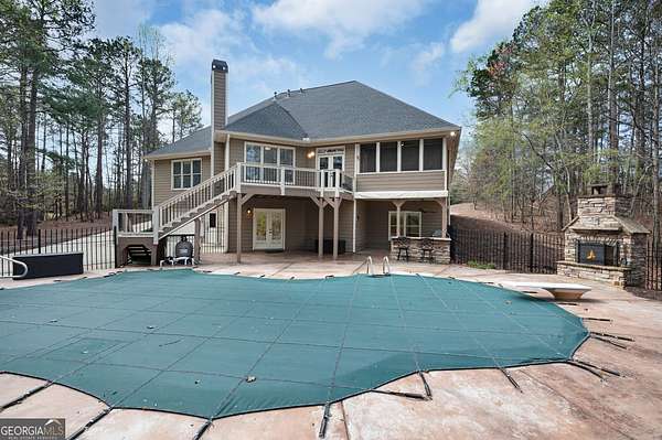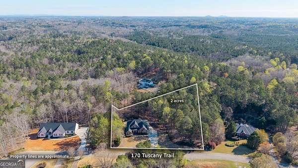 Welcome to 170 Tuscany Trail, a stunning 3-bedroom, 3.5-bathroom estate situated on 2 sprawling acres of professionally landscaped grounds. This home was specifically designed for entertaining, offering a perfect blend of sophisticated open-concept living and high-end private retreats. The heart of the home features an expansive kitchen with a large island/bar, an abundance of cabinet space, a chef grade gas stove, and a spacious breakfast area. The flow continues into the formal dining room and a large family room centered around a cozy wood-burning fireplace. For more formal gatherings, the home also includes a large separate living room. The oversized master suite is a true sanctuary, boasting a massive walk-in closet with custom shelving and a spa-like master bath with a beautiful, oversized tile shower and garden tub. The secondary bedrooms on the main level are thoughtfully connected by a Jack and Jill bathroom, perfect for family or guests. The outdoor oasis is an entertainer's dream, featuring a beautiful saltwater pool ready for all of your summer fun with family and friends. Relax by the outdoor fireplace or enjoy the built-in grill station and movable dining console includes refrigerator for cooling summer beverages. The yard stays lush year-round thanks to professional landscaping, sod, and a sprinkler system inspected just six months ago. Practicality meets luxury with a 2-car main level garage plus an additional drive-under garage in the basement plenty of parking for guests. The basement offers a huge, finished space and a full bath, along with a significant amount of unfinished area that provides incredible expandable space for additional bedrooms, storage or rec area. This home has been meticulously maintained and is ready for its next chapter.