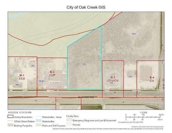 Est $5,389/moHigh Visibility Development Opportunity awaits! 4+ Acre Lot located right on Ryan Rd with constant road traffic on Ryan Rd and S Howell Ave. Zoned B4. Close to shopping, airport, and major Hwy. Perfect location to start your new venture!