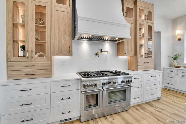 - Stunning stacked two-tone cabinetry and quartz countertops