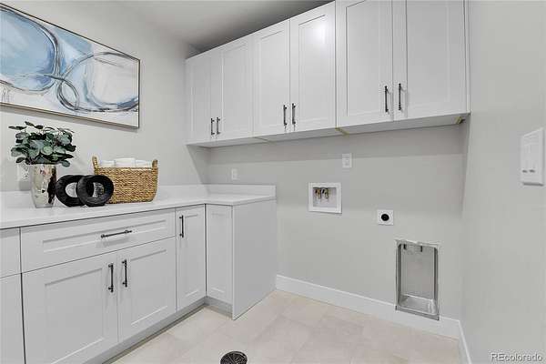 - Main level primary suite featuring a spacious walk-in closet with washer/dryer hookups, and luxurious 5-piece bath