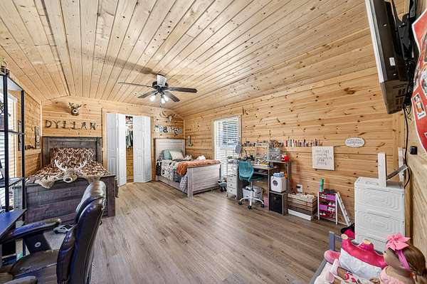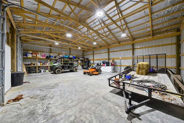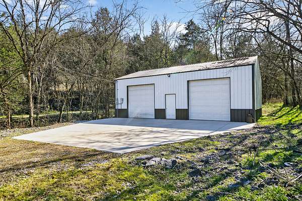 - 30x40 metal shop with concrete flooring and full utilities o Cozy back patio with fire pit o Two concrete bridges over the creek o Two elevated hunting boxes (each seats 3 adults) with 360-degree viewing glass o 30x40 weathered barn o Original chicken coop with outdoor attachments o High-speed fiber optic internet and TV o Forever spring crystal clear water