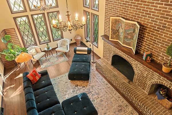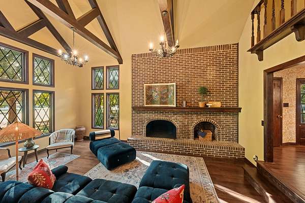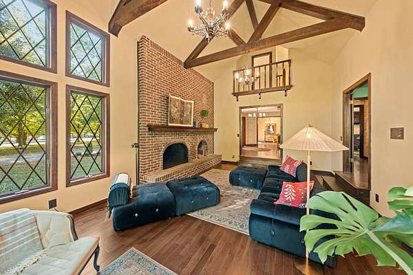 Storybook Tudor in the heart of Columbia. This beautifully reimagined 4 bedroom, 2.5 bath Tudor blends old world charm with fresh, thoughtful updates. Nestled on a corner lot within the city limits, this home offers space, privacy, and timeless architectural appeal--all within the Woodard Elementary school zone. A brick and half-timbered facade sets a storybook tone, leading into a warm interior with new hardwood floors, rich wood trim, and expansive windows that fill the home with natural light. The dramatic great room features exposed beams, a two-story brick fireplace and windows that frame the serene views of the property's mature trees. The kitchen retains it's vintage craftsmanship with solid wood cabinetry and modern updates that compliment the home's period character. Upstairs, the large bedrooms are perfect for family, guests, or office space. Outdoors, the wide-open acreage is perfect for gardening, recreation, or simply enjoying the park-like setting. With its distinctive design, beautifully preserved details, and in-town acreage, this property captures European-inspired charm--a true Columbia treasure.