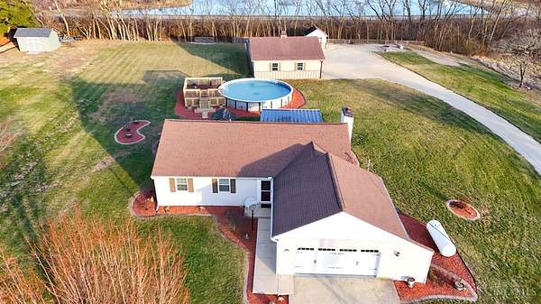 Welcome to this beautifully updated 3-bedroom, 2.5-bath ranch nestled on 1.56 scenic acres in the highly desirable Ross School District. This home offers the perfect blend of space, comfort, and peace of mind, with major updates already completedincluding a new roof (2020), windows (2019), USA Insulation (2019), furnace and air conditioning (2022), hot water heater (2022), Generac whole-house generator (2023), and a water filtration system (2025). The propane tank is owned. The main level provides easy one-floor living, while the walk-out lower level expands your options with a spacious recreation room and a potential fourth bedroom ideal for guests, a home office, or hobby space. Step outside to enjoy outdoor living at its best with a covered Trex deck overlooking the backyard, leading to an above-ground pool with an attached deck.The property also features a fire pit with built-in bench seating. Fantastic detached garage for RV/boat/Truck/multiple cars/workshop.