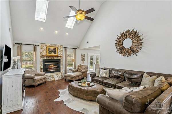 A Grand Welcome! The sprawling acreage offers a rare sense of seclusion and space, perfect for outdoor entertaining, gardening, or simply enjoying the breeze through the oaks. With four generous bedrooms and three and half baths, this home is designed for both comfort and functionality. The main bedroom is a true retreat featuring an en-suite bath designed to be your private oasis at the end of the day. Wood-burning, stone fireplace and wood flooring throughout the main level are just a couple of features that set this home apart. Whether you are sipping coffee on the back deck with a view of mature oak trees, or hosting a gathering in your back yard, this home offers a lifestyle of quiet luxury and natural beauty. Offers plenty of space for your boat, RV's, campers or room to play! Seller is a licensed Florida real estate agent.